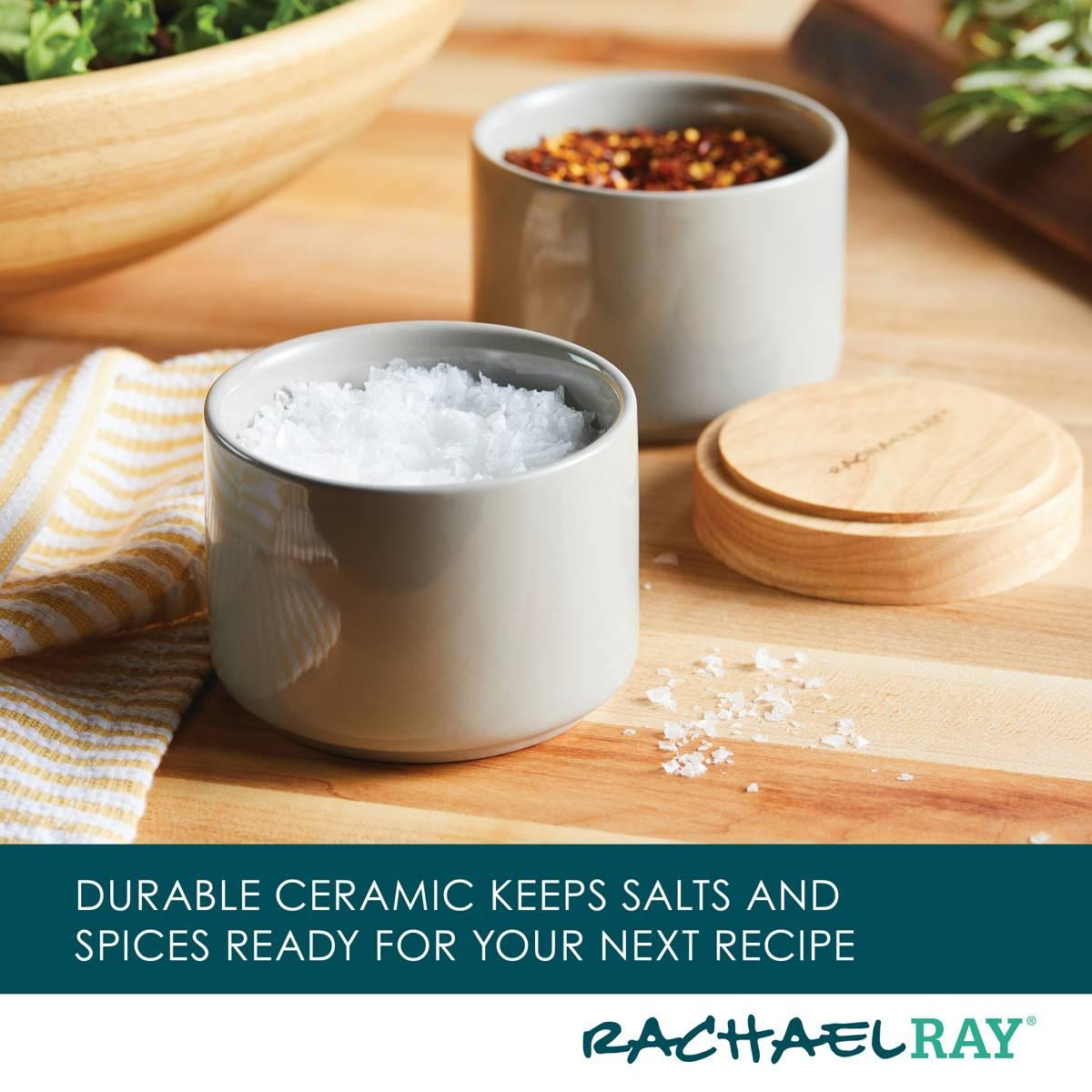 - KITCHEN FRIENDLY STORAGE: Rachael Ray ceramic spice boxes are crafted from durable ceramic for stylish and practical seasoning at the countertop or table.