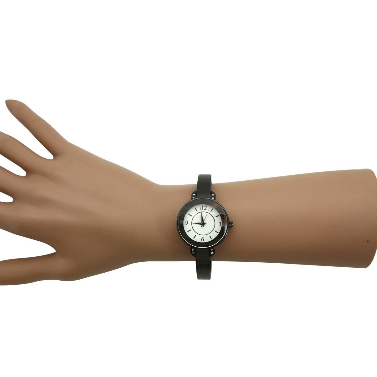 This Womens Olivia Pratt™ metallic round face bangle watch is super unique, featuring stainless steel material strap, accented case, and classy numeral ticks, this watch is the perfect addition to your accessory collection. Olivia Pratt is always looking after new designs to improve your style! Using the best quality materials available in all of our products ensures long durability in your everyday wear. Please be aware, the color vibrancy of the product might change from device to device.