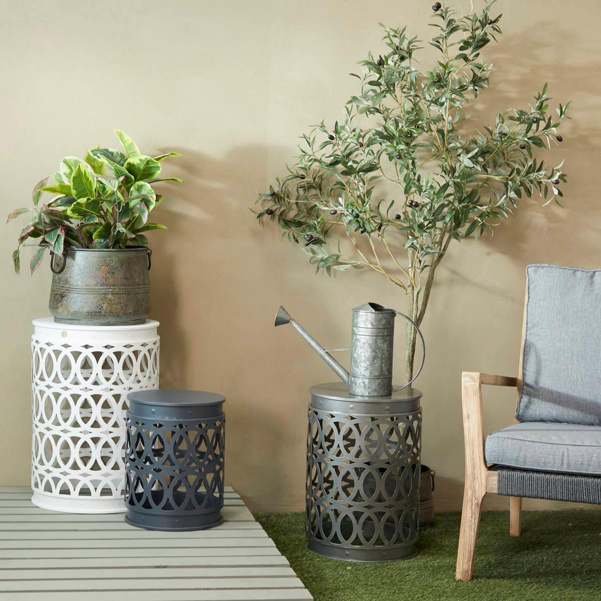 This set of 3 9th & Pike® multi metal contemporary accent tables provide you with additional storage space anywhere in your home. Place this 9th & Pike® item next to your patio seating, near the pool, or garden or challenge your creativity by bringing it inside for individualistic appeal. Level up your rooms by coordinating this set of round accent tables on different corners to create the perfect neutral-toned contemporary living vibe.