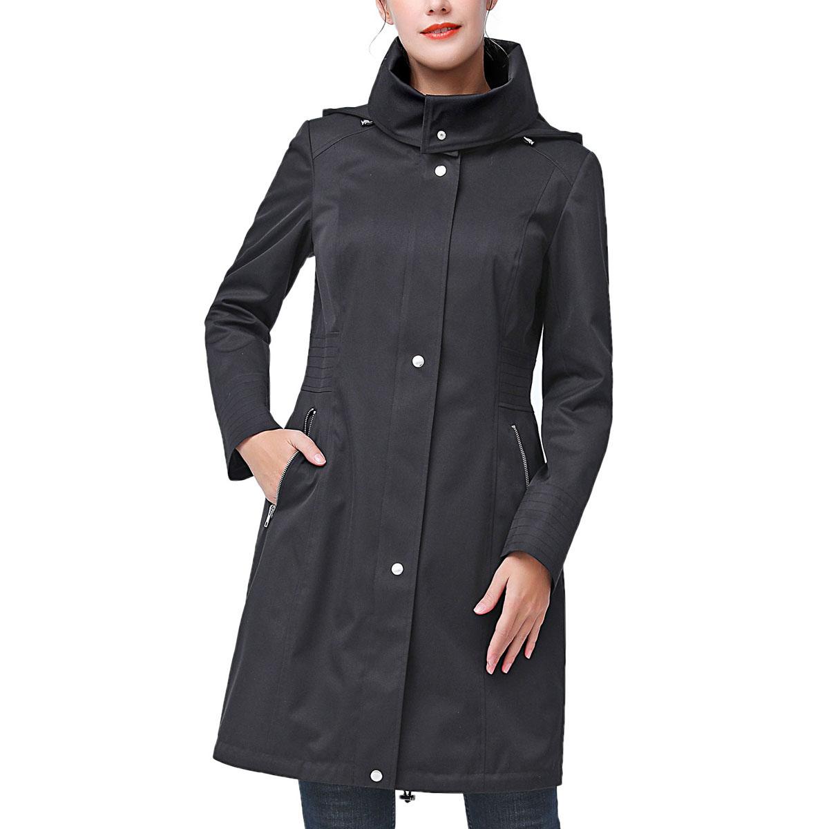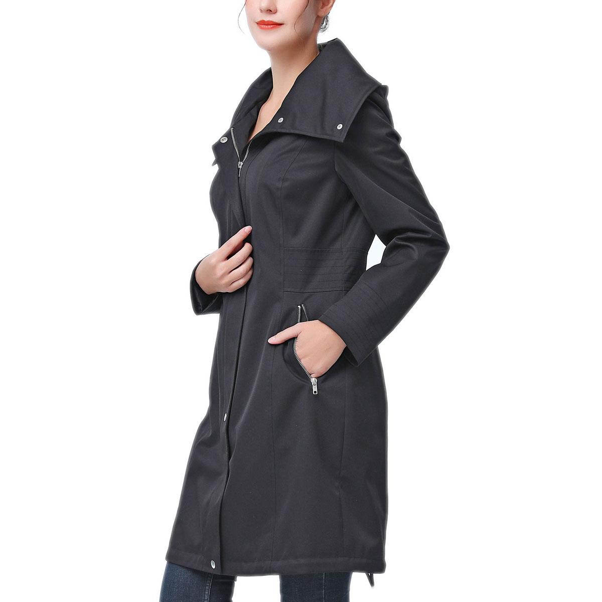 Stay comfy and warm this season with this Womens BGSD waterproof hooded anorak jacket. The collar is convertible and can be worn up in multiple ways. Additional features include a removable and adjustable hood, two exterior zip pockets, and an interior drawstring.