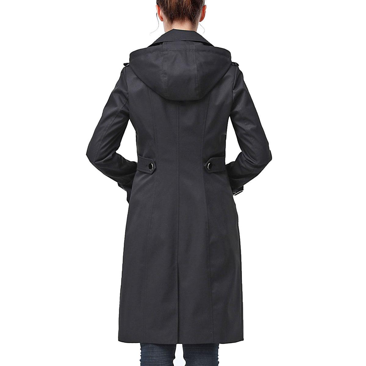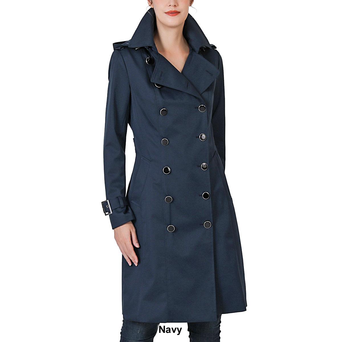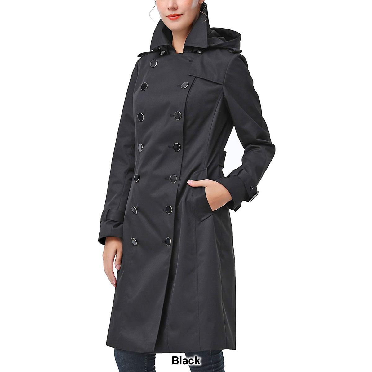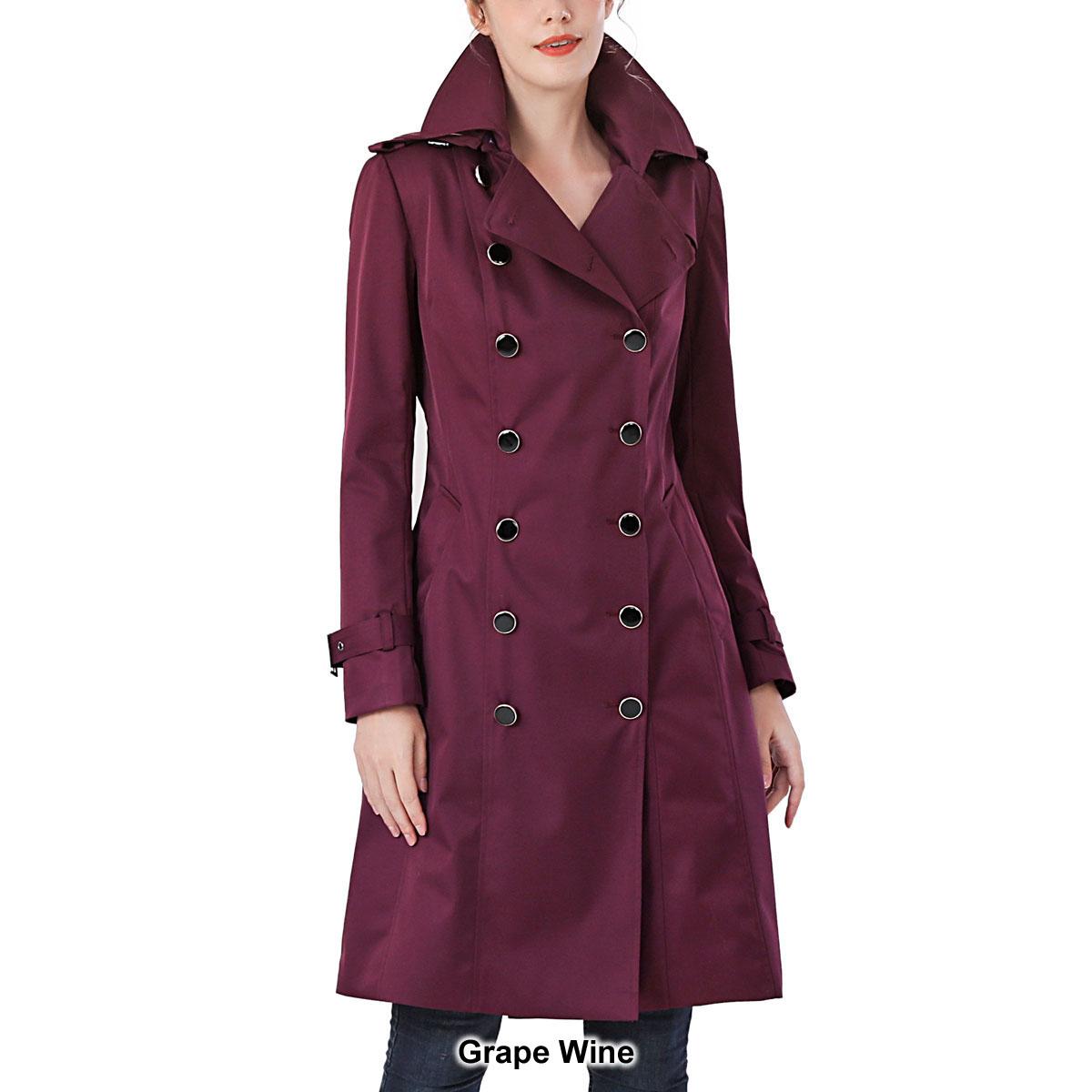 Stay warm and cozy with this Womens BGSD waterproof double-breasted trench coat. Features extra room through the chest and waist for a classic fit and enough room to layer inside. Additional features include a removable and adjustable hood and two exterior pockets.