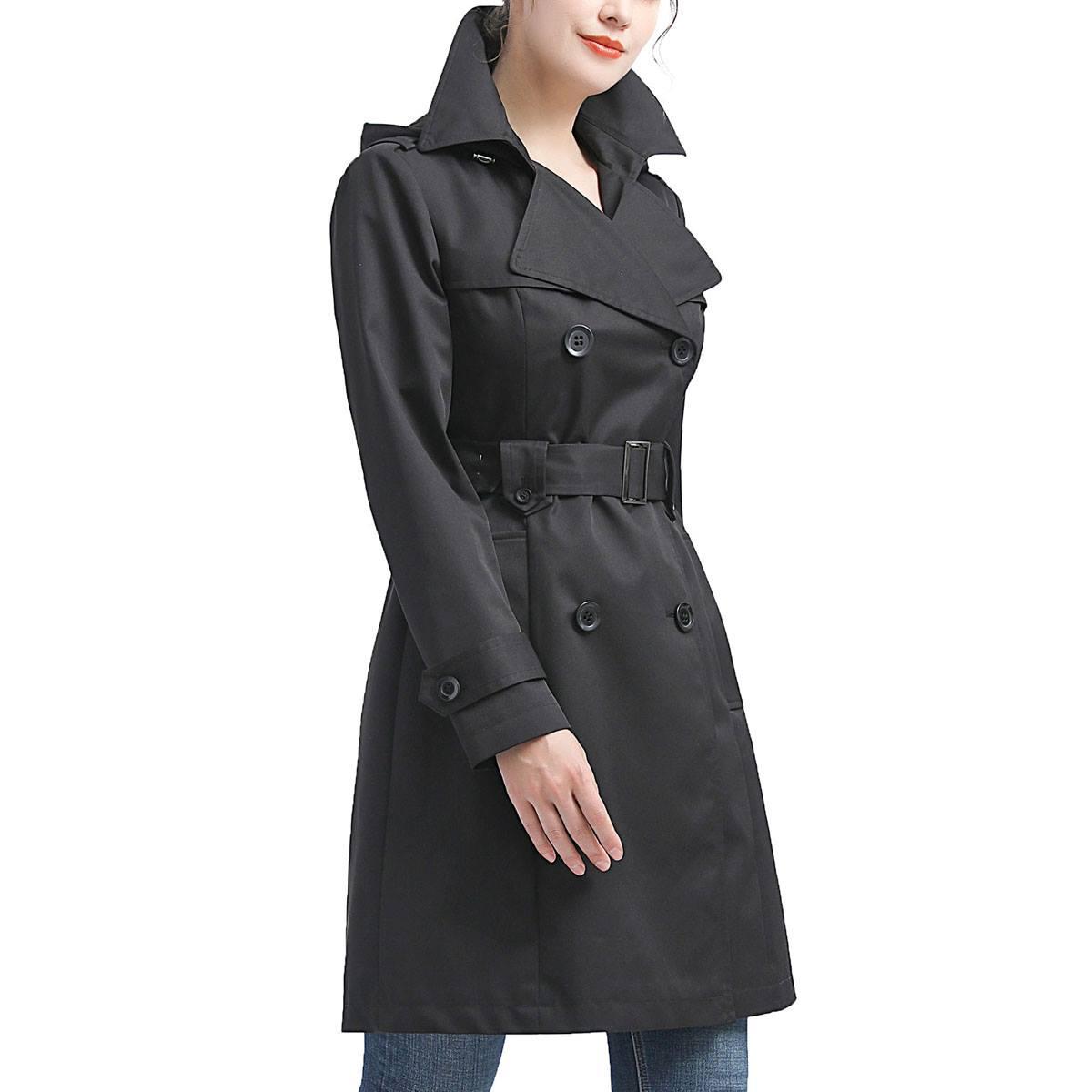 Stay comfy and warm this season with this Womens BGSD waterproof adjustable hooded trench coat. The notched lapel and storm flaps, accented by a buttoned belt loop make a professional yet elegant statement. Featuring double-breasted button front closure, a removable and adjustable hood, side welt pockets, a sleeve strap, and a back vent.