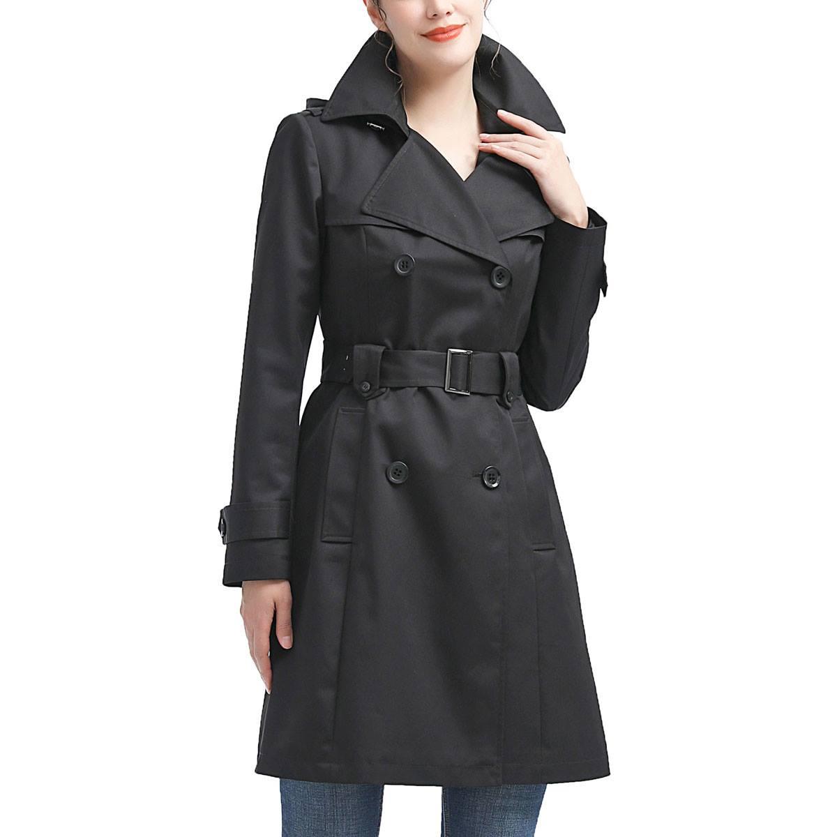 Description Stay comfy and warm this season with this Womens BGSD waterproof adjustable hooded trench coat. The notched lapel and storm flaps, accented by a buttoned belt loop...