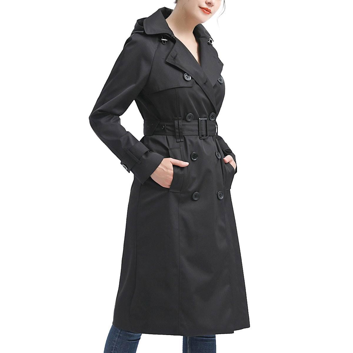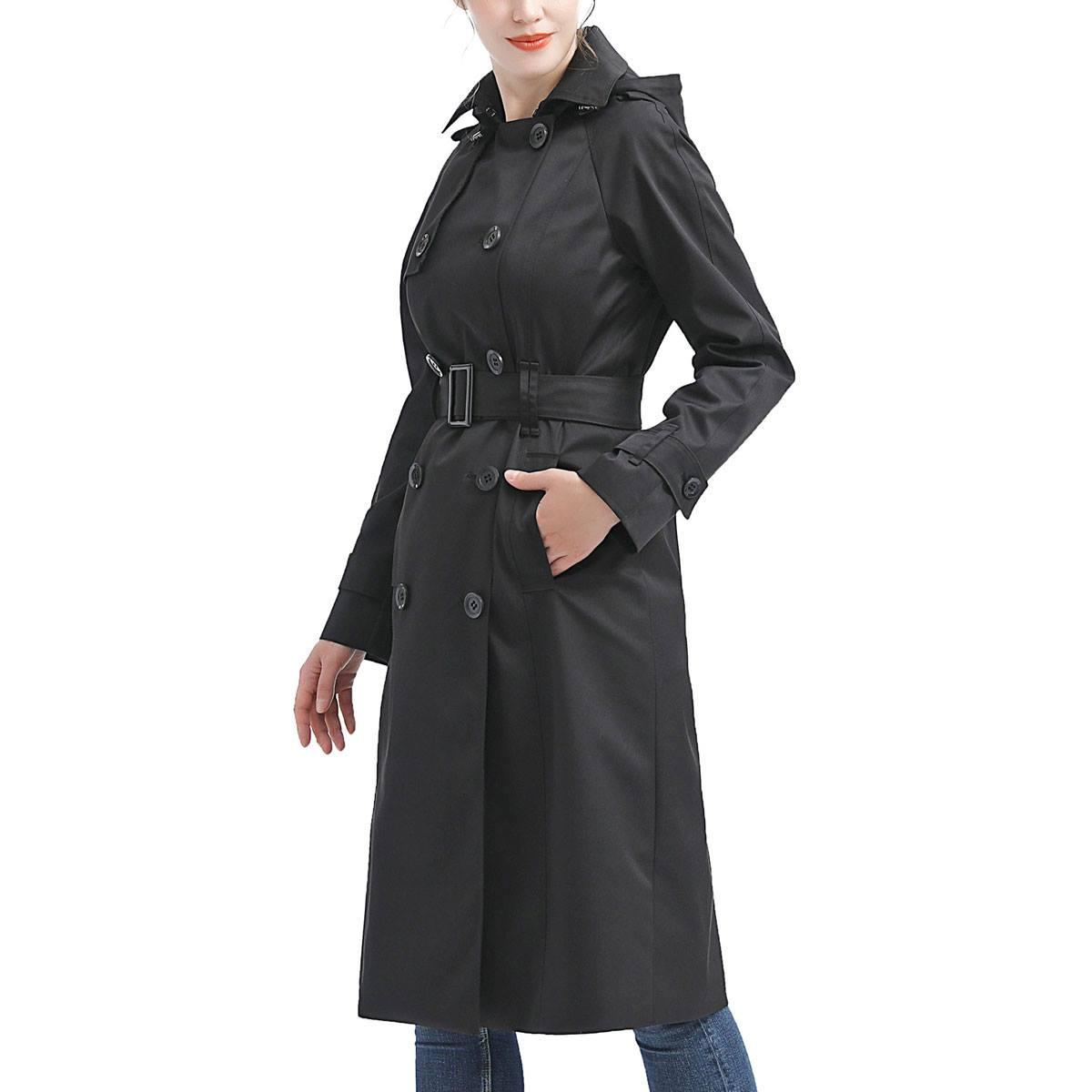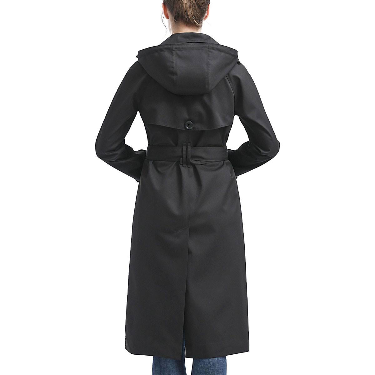 Stay comfy and warm this season with this Womens BGSD waterproof 3/4 length hooded trench coat. The coat completes any outing or business ensemble. Featuring double-breasted button front closure, a removable and adjustable hood, side welt pockets, and a back vent.
