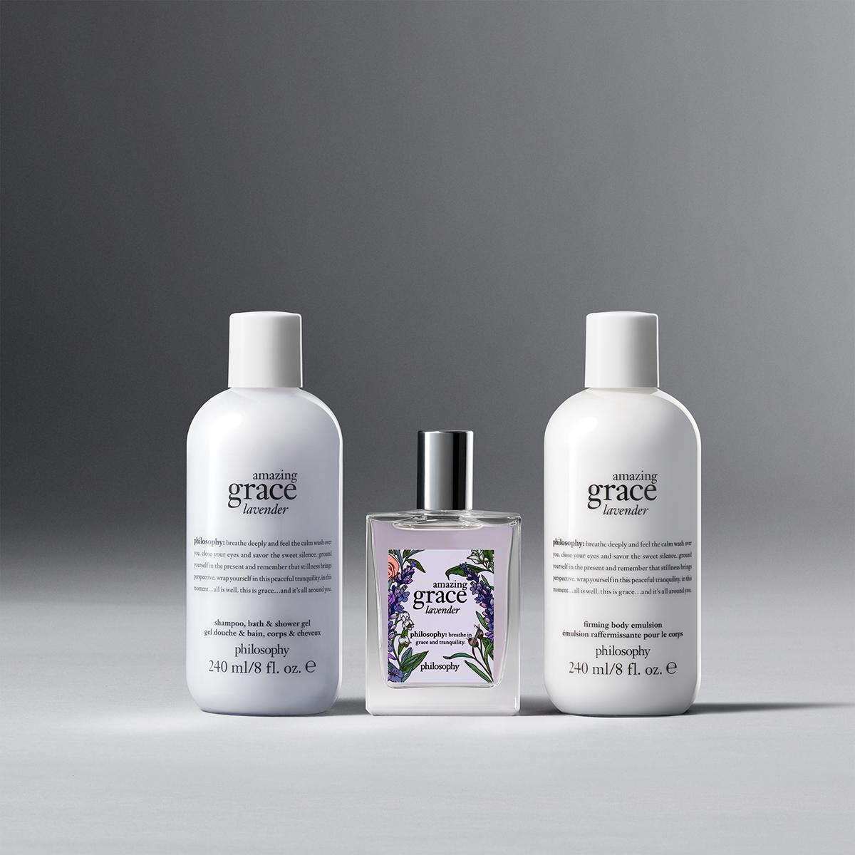 Description A tranquil twist on the #1 women’s fragrance brand in America. Our limited-edition Philosophy Amazing Grace lavender eau de toilette spray takes the bestselling...