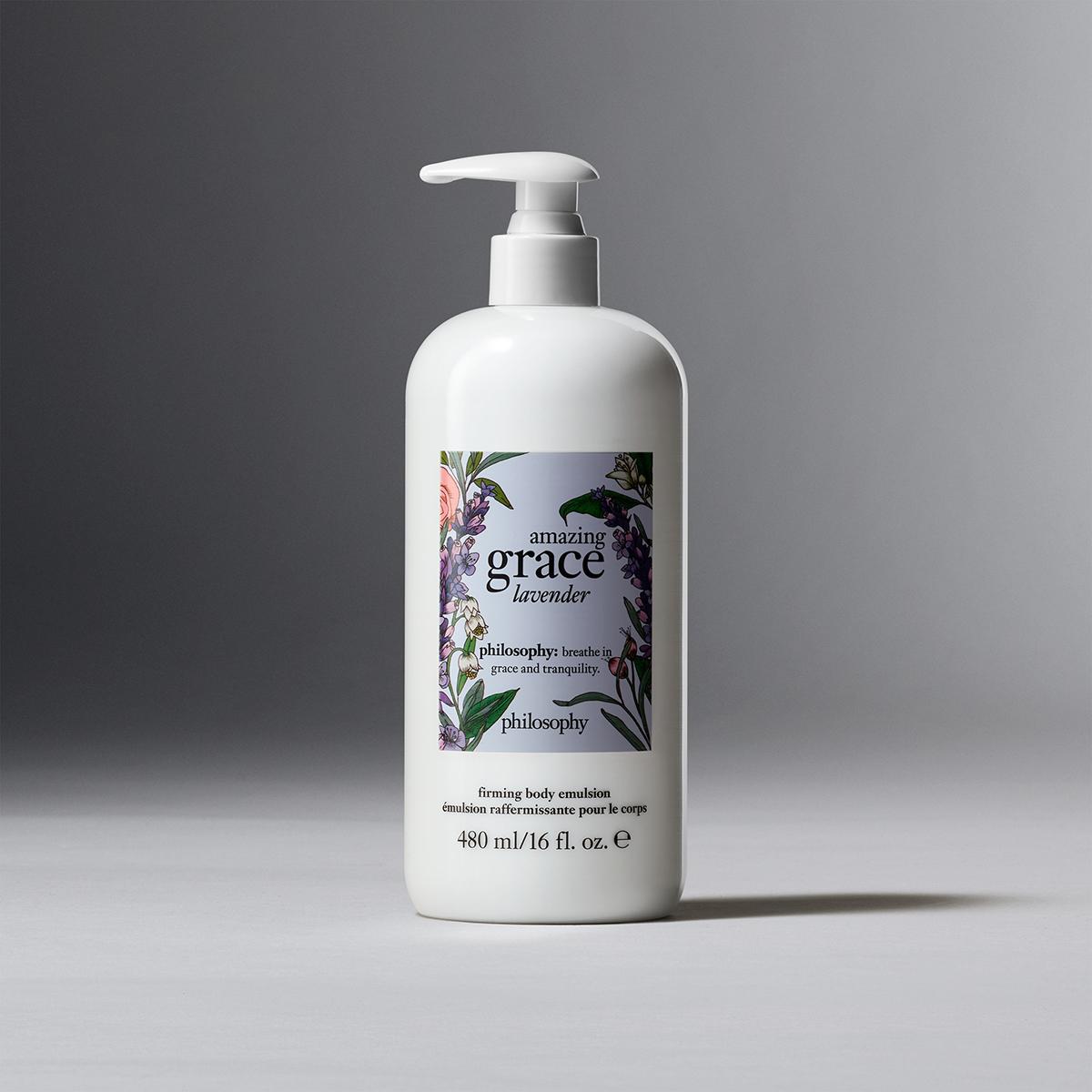Description Smooth and hydrate skin with our new, limited-edition Philosophy Amazing Grace lavender firming body lotion. Item #: 732901 Pricing Disclosure