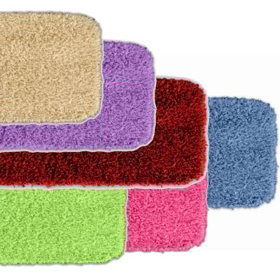 This shaggy nylon bathroom two piece rug set is machine washable and the non-skid backing keeps the rugs from sliding. The reinforced edges prevent fraying.