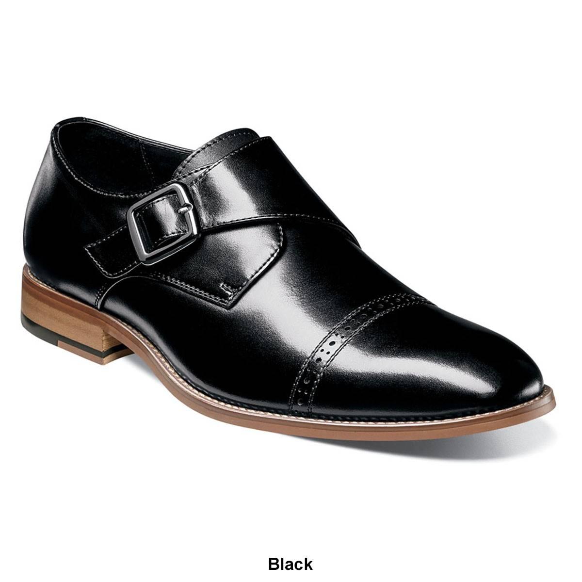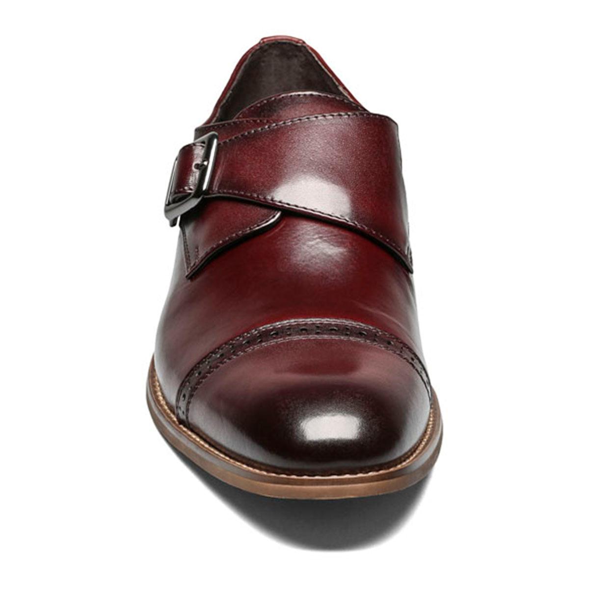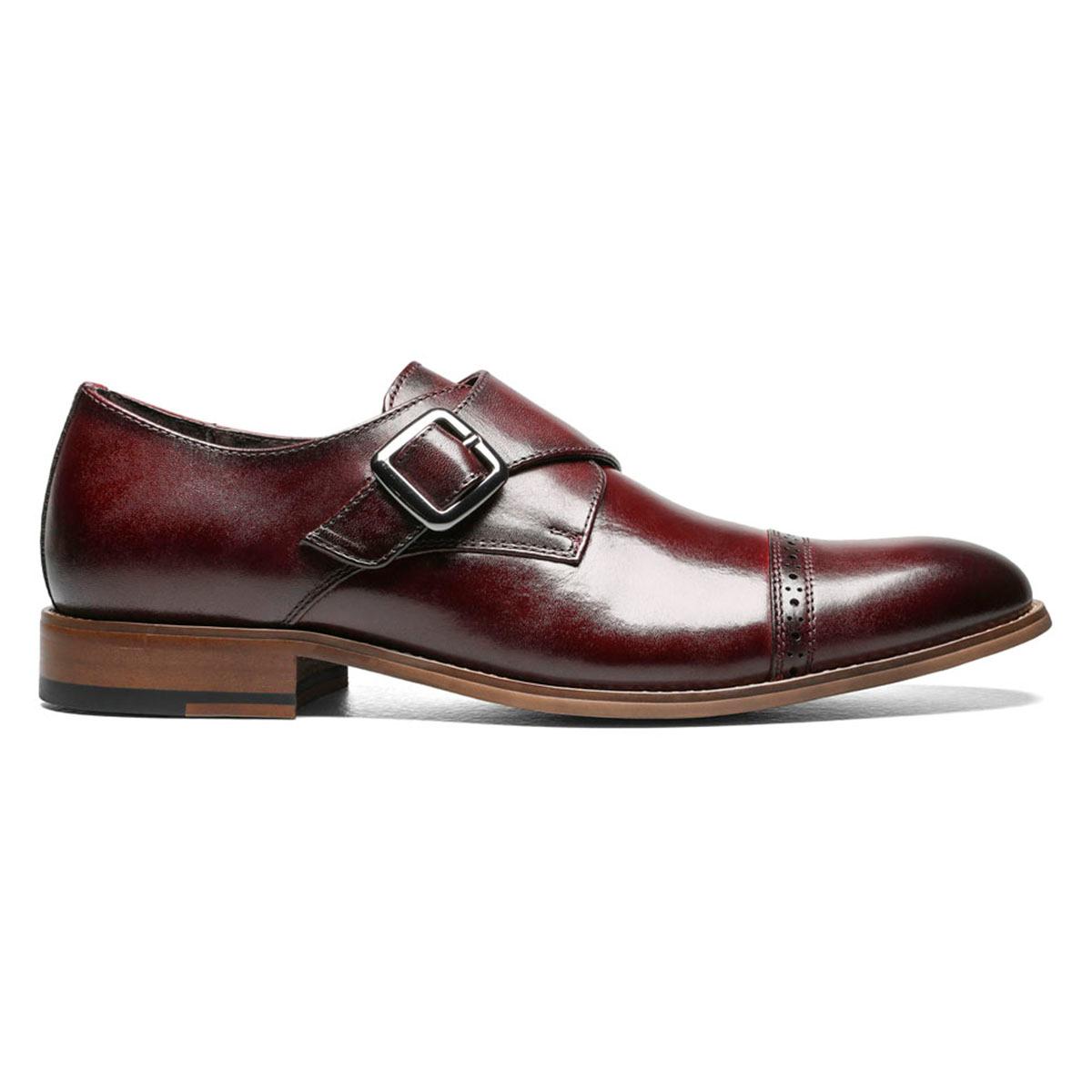 Elegant, yet eye-catching, the Mens Stacy Adams Desmond cap toe monk strap oxfords are an updated classic single monk strap. Details like the gunmetal buckle, single line of perforation on the cap toe, and stacked heel give it enough edge to turn some heads.