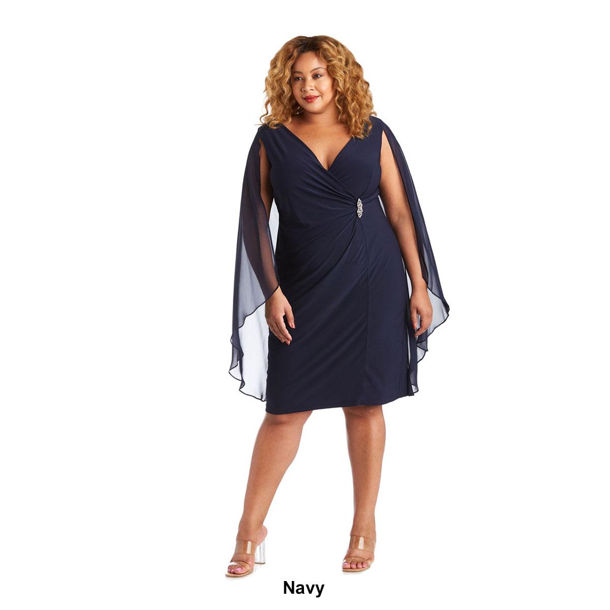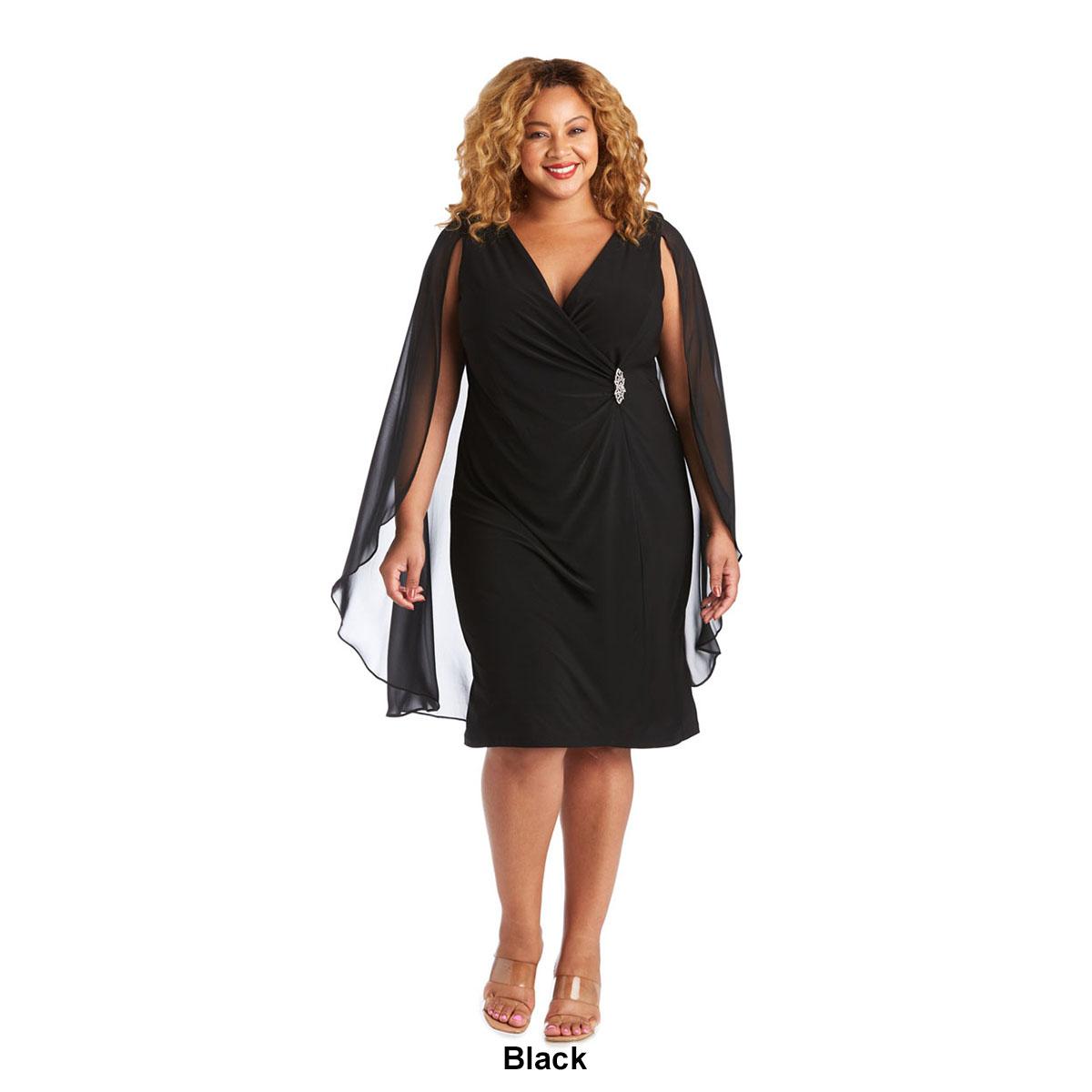 Description This Plus Size R&M Richards chiffon duster cape wrap dress is the perfect addition to your wardrobe. The cape gives an elegant and fancy vibe that will wow everyone....
