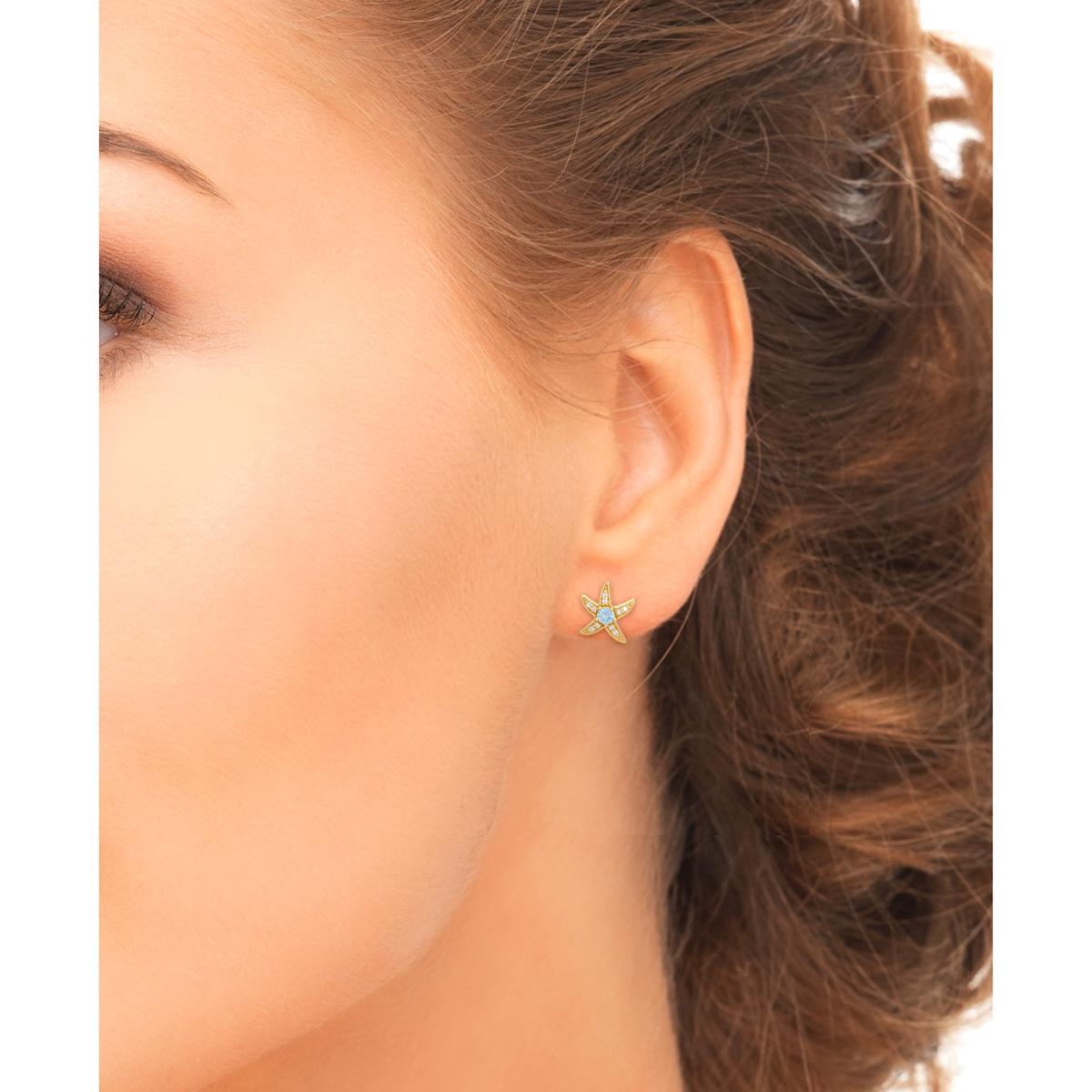Be a seaside sensation in these Gianni Argento whimsical starfish stud earrings, set with blue topaz and lab-created white sapphires.