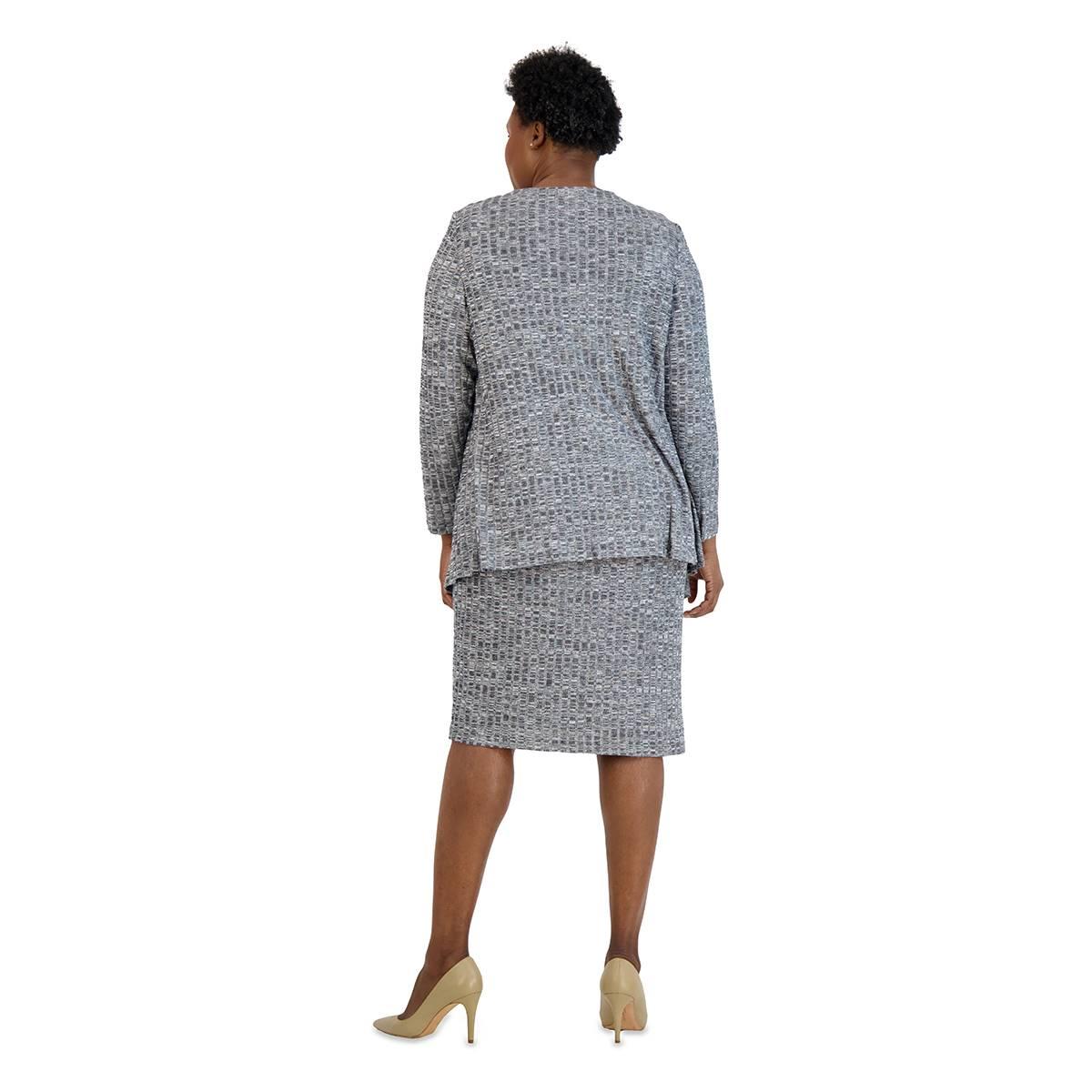 This Plus Size R&M Richards Cascade Jacket and Dress is perfect for a casual business look. Comes with a detachable necklace for added design. The stunning cascade jacket comes with long sleeves to cover up in the colder months. The jacket and dress are attached.