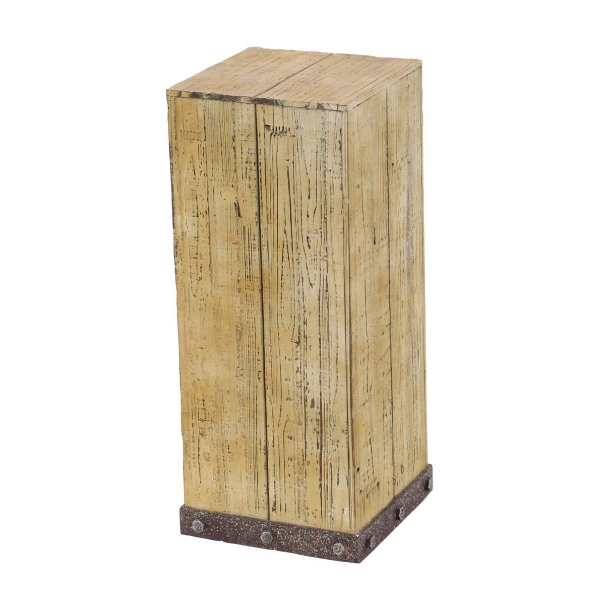 Elevate the look of your room with this 9th & Pike® brown wood rustic pedestal table. Display your plants, decor, or your favorite art piece on this beautifully crafted pedestal table. The design takes inspiration from box wooden crates that can be used as console tables or corner posts for flower vases and trophies in industrial, rustic, and eclectic interiors.