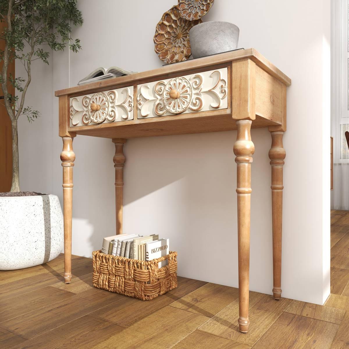 Bring a finishing touch to your home with this 9th & Pike® brown Farmhouse wood console table. A sturdy and long-lasting construction for years of enjoyment. This rectangular wood console table suits any cottage or country-themed home.