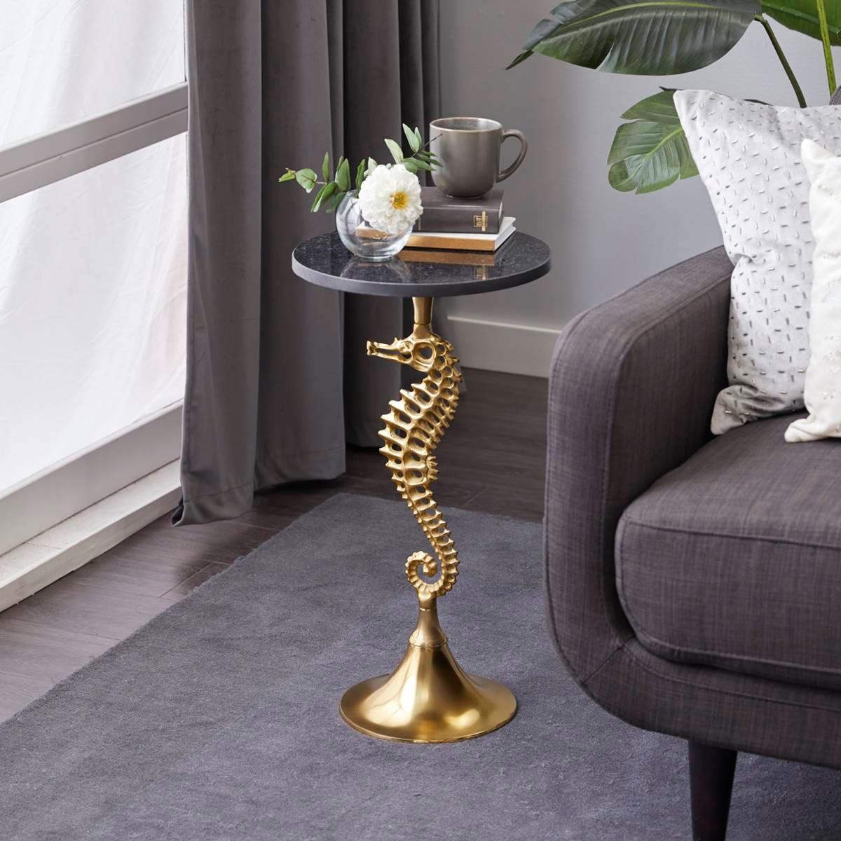 9th & Pike® Gold Aluminum Coastal Accent Table
