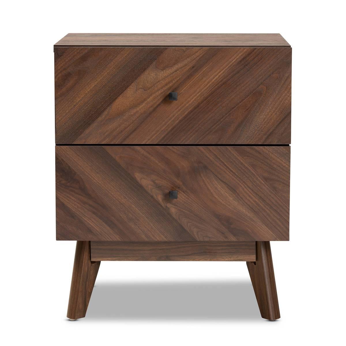 Baxton Studio Hartman Walnut Brown Wood 2-Drawer Nightstand