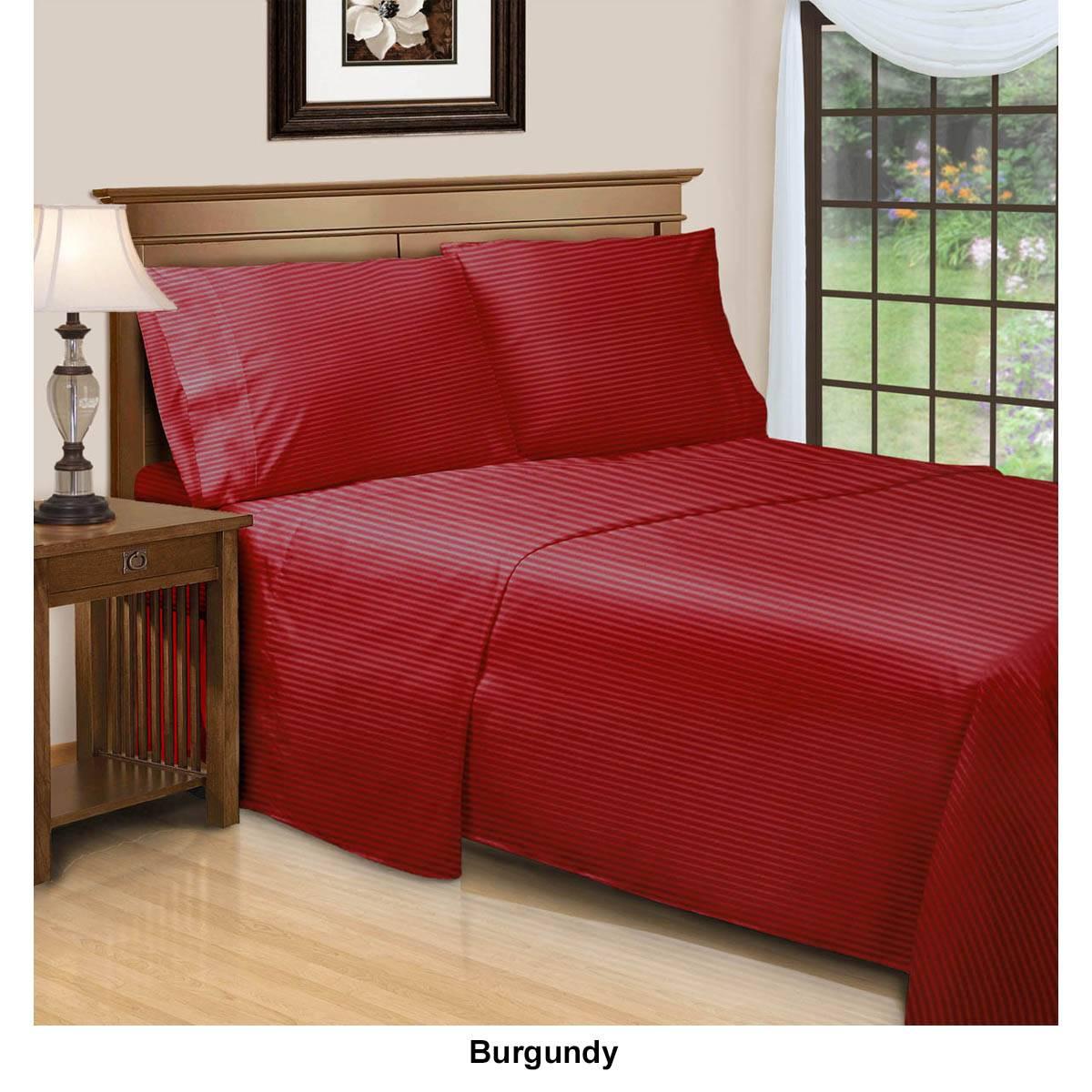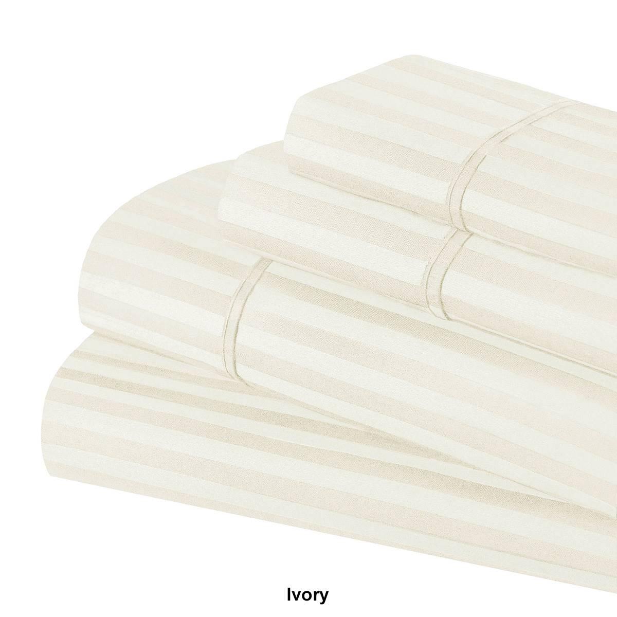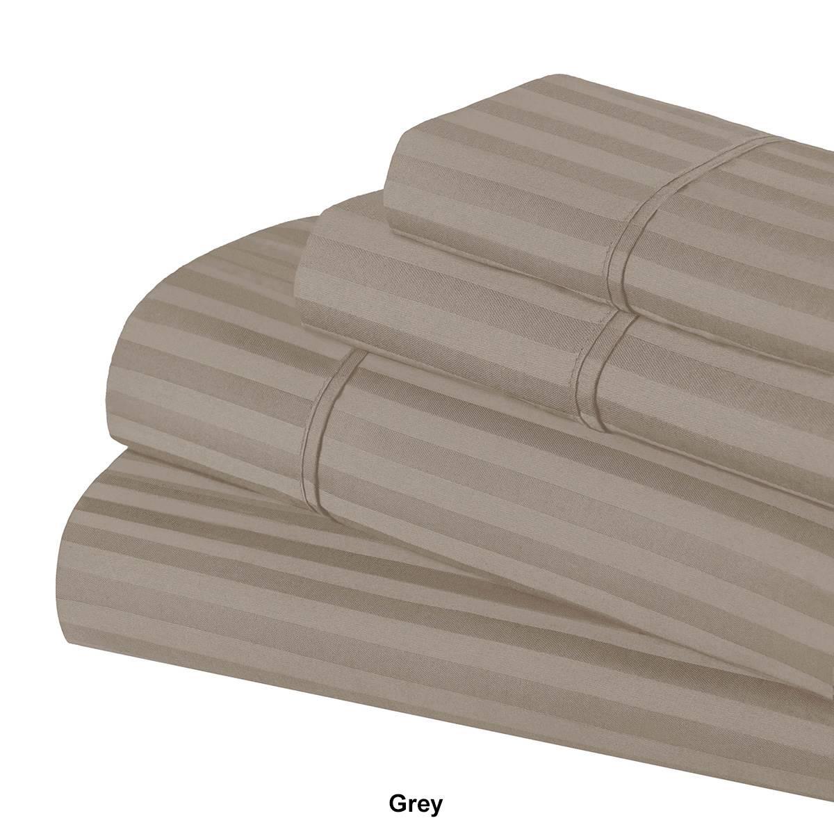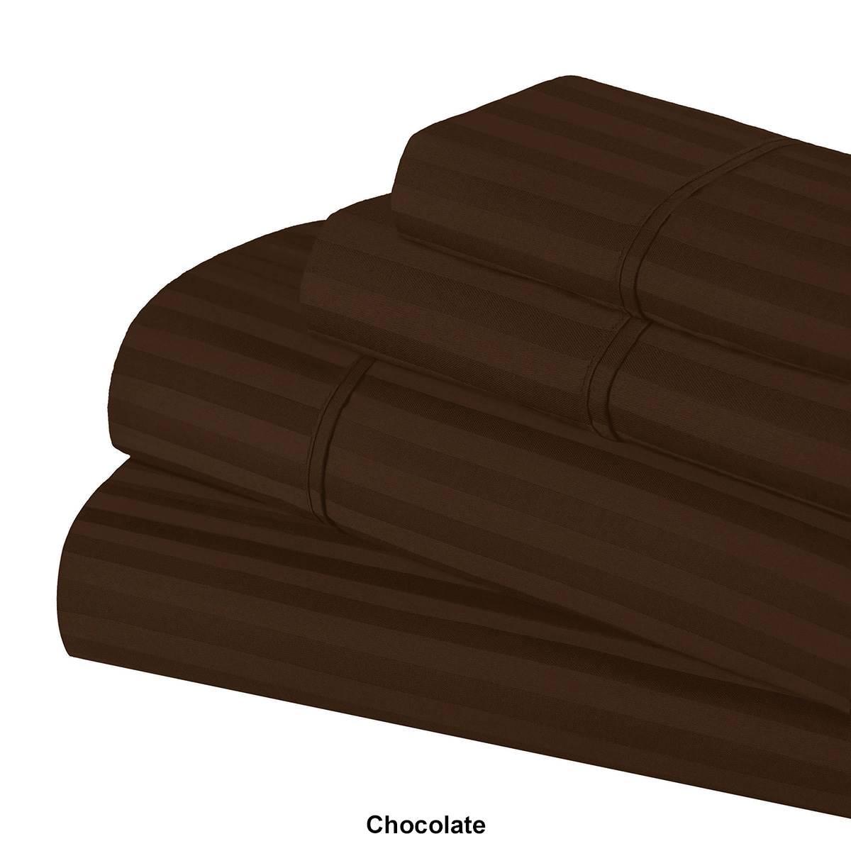 Give your bed a comfortable, luxurious feel with this decadent Superior striped sheet set. The bundle is beautifully designed with premium 100% Egyptian cotton that boasts a cozy 600 thread count to provide a peaceful night´s sleep. The fully-elasticized fitted sheet is constructed with a deep pocket that is designed to fit oversized mattresses up to 18 inches thick. Available in a variety of colors with a subtle shimmer from their sateen weave and an embroidered trim on each piece. You´re sure to find just the right style for your bed. Add extra pillowcases or a duvet cover set, sold separately, for a finished, relaxing look.