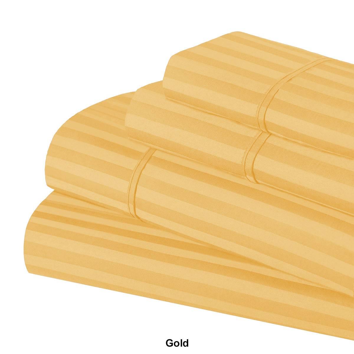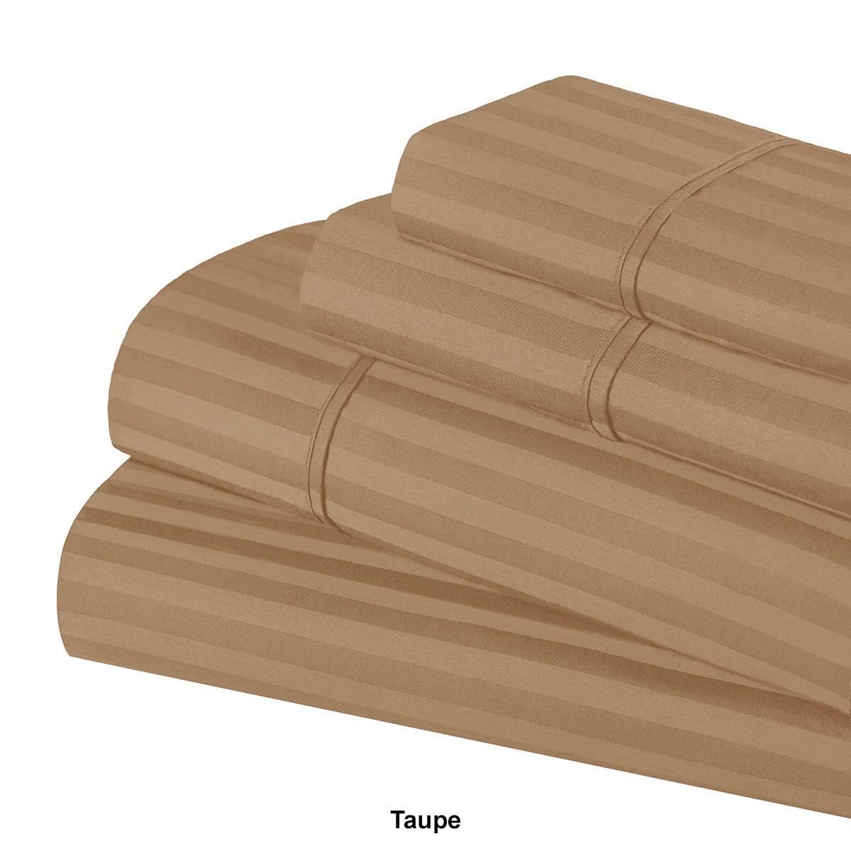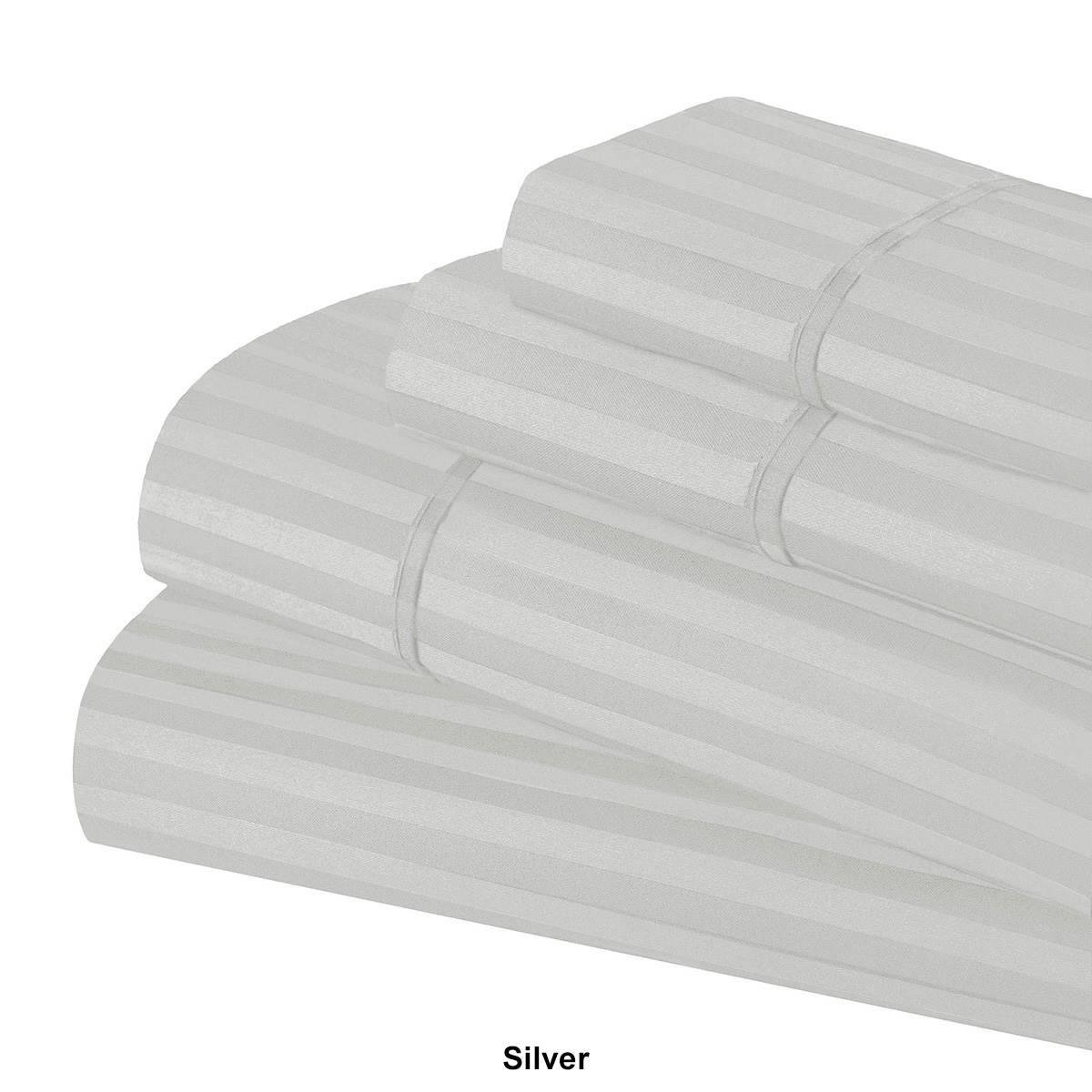 Give your bed a comfortable, luxurious feel with this decadent Superior striped sheet set. The bundle is beautifully designed with premium 100% Egyptian cotton that boasts a cozy 600 thread count to provide a peaceful night´s sleep. The fully-elasticized fitted sheet is constructed with a deep pocket that is designed to fit oversized mattresses up to 18 inches thick. Available in a variety of colors with a subtle shimmer from their sateen weave and an embroidered trim on each piece. You´re sure to find just the right style for your bed. Add extra pillowcases or a duvet cover set, sold separately, for a finished, relaxing look.