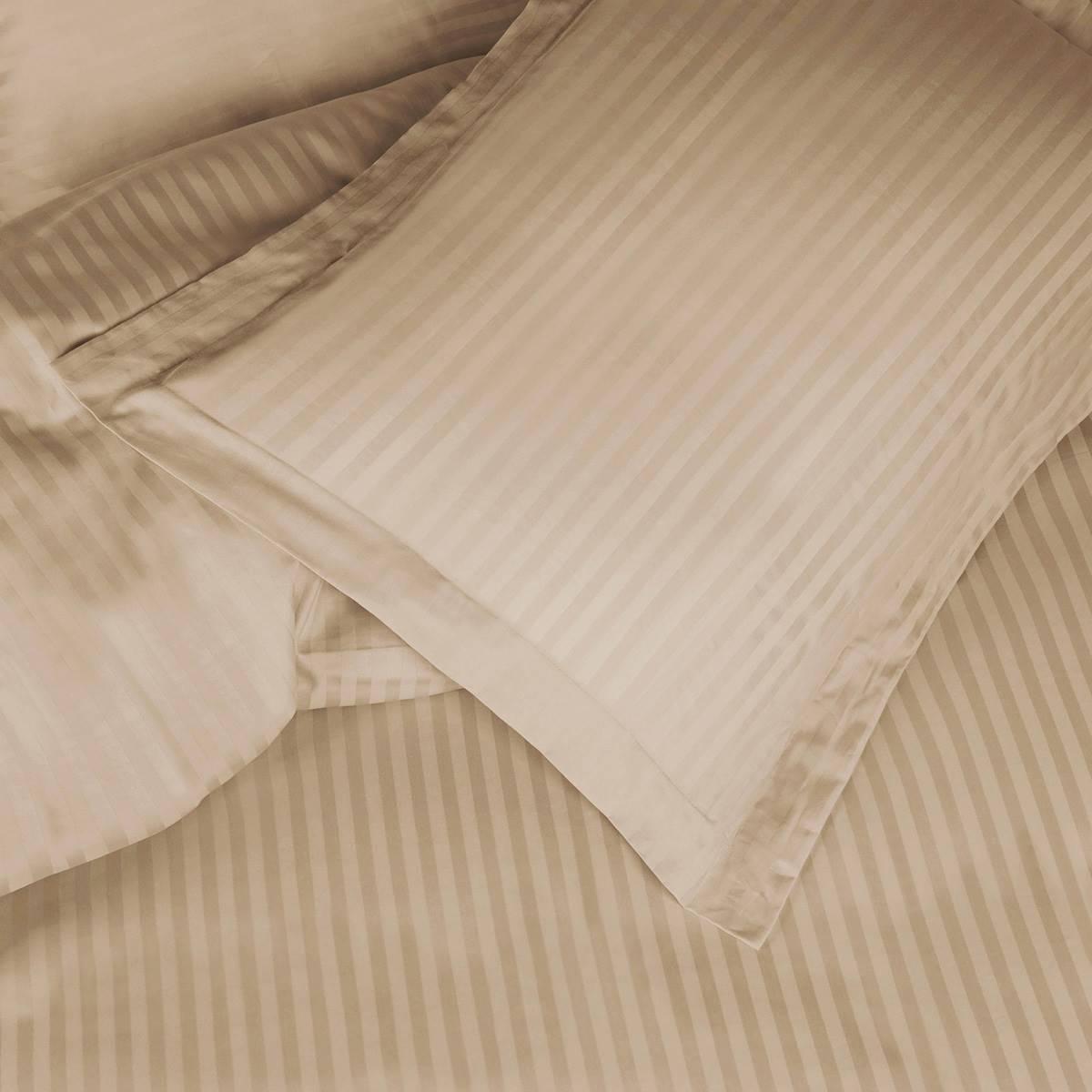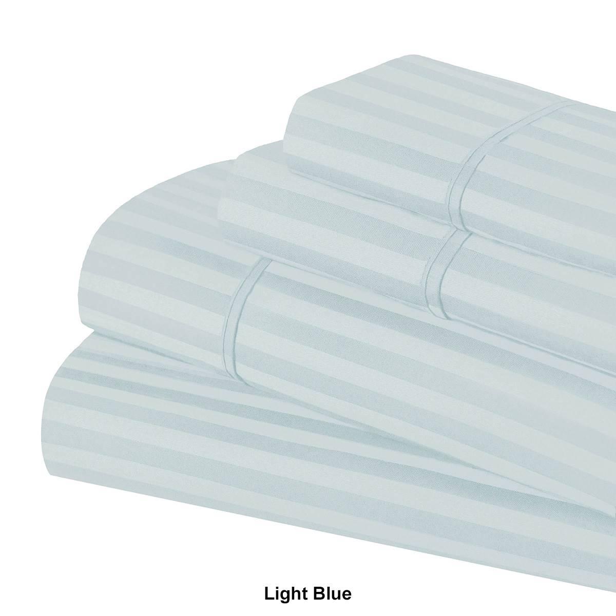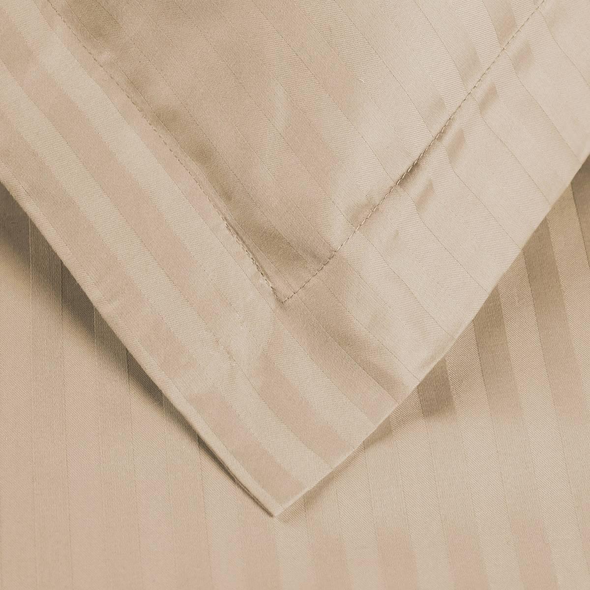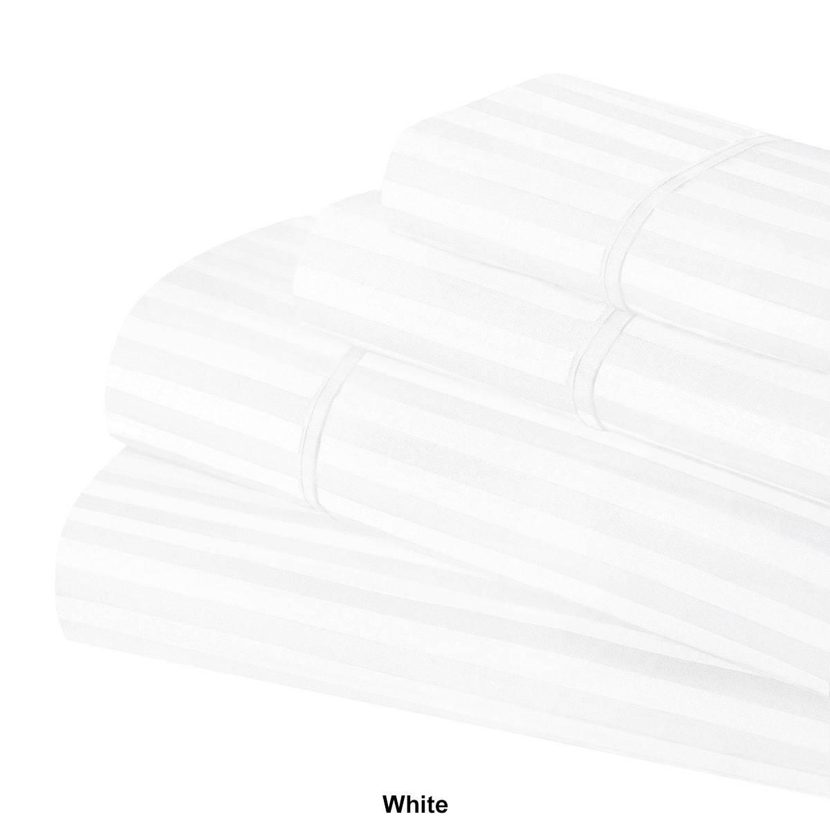Give your bed a comfortable, luxurious feel with this decadent Superior striped sheet set. The bundle is beautifully designed with premium 100% Egyptian cotton that boasts a cozy 600 thread count to provide a peaceful night´s sleep. The fully-elasticized fitted sheet is constructed with a deep pocket that is designed to fit oversized mattresses up to 18 inches thick. Available in a variety of colors with a subtle shimmer from their sateen weave and an embroidered trim on each piece. You´re sure to find just the right style for your bed. Add extra pillowcases or a duvet cover set, sold separately, for a finished, relaxing look.