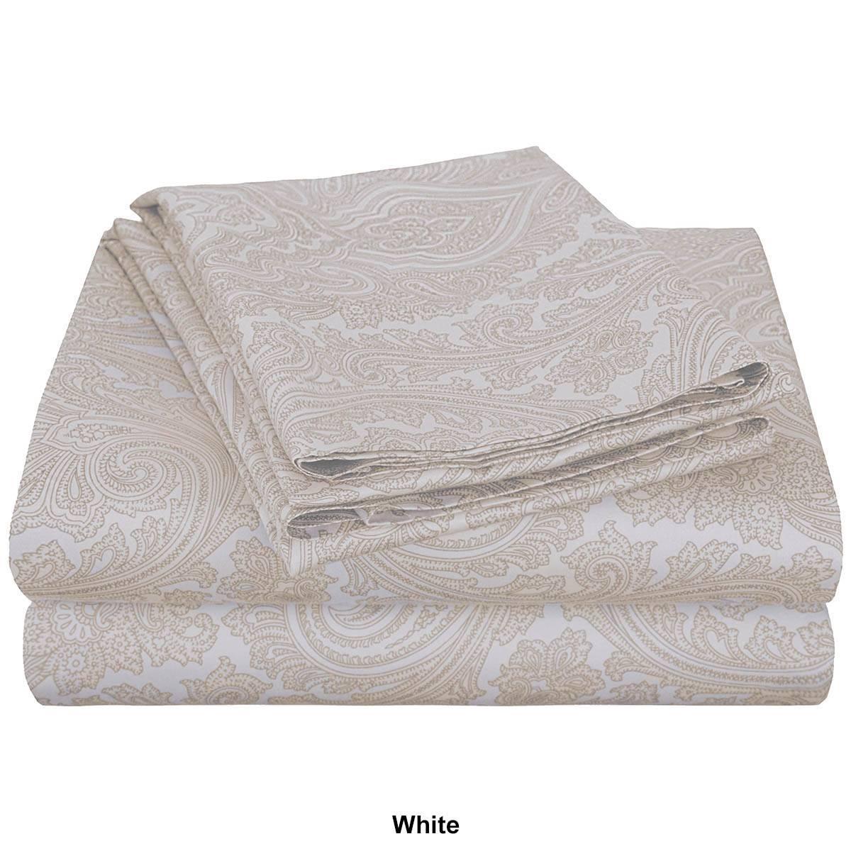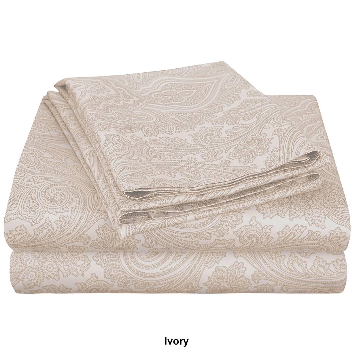 Update your bedroom into a tranquil retreat with the elegant and long-lasting Italian paisley 600 thread count cotton blend deep pocket sheet set. Crafted with a premium blend of 55% cotton and 45% polyester and boasting a soft, 600 thread count, this elegant set is durable, comfortable, and perfect for year-round use. Available in an array of inviting colors with a monochromatic paisley pattern, these sheets create a glamorous feel to your space. This set includes one flat sheet, one fitted sheet, and two pillowcases. The fully-elasticized fitted sheet has a deep pocket construction that fits oversized mattresses up to 18 inches thick. Add a matching duvet and sham set or a bedspread, sold separately, for a complete look.