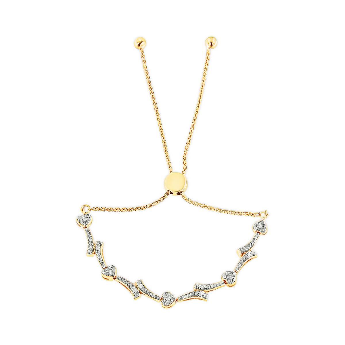 Why choose imitation diamonds when you can have the real thing? Add a touch of bling to your everyday wear with this Haus of Brilliance gold over silver diamond accent bolo bracelet. Crafted from genuine .925 sterling silver, this piece is plated in sparkling 14-karat yellow gold and designed with wave and circular links embellished with natural, round-cut diamonds in a classic prong setting. The bolo bracelet is adjustable from 6-9 inches and will fit many wrist sizes.