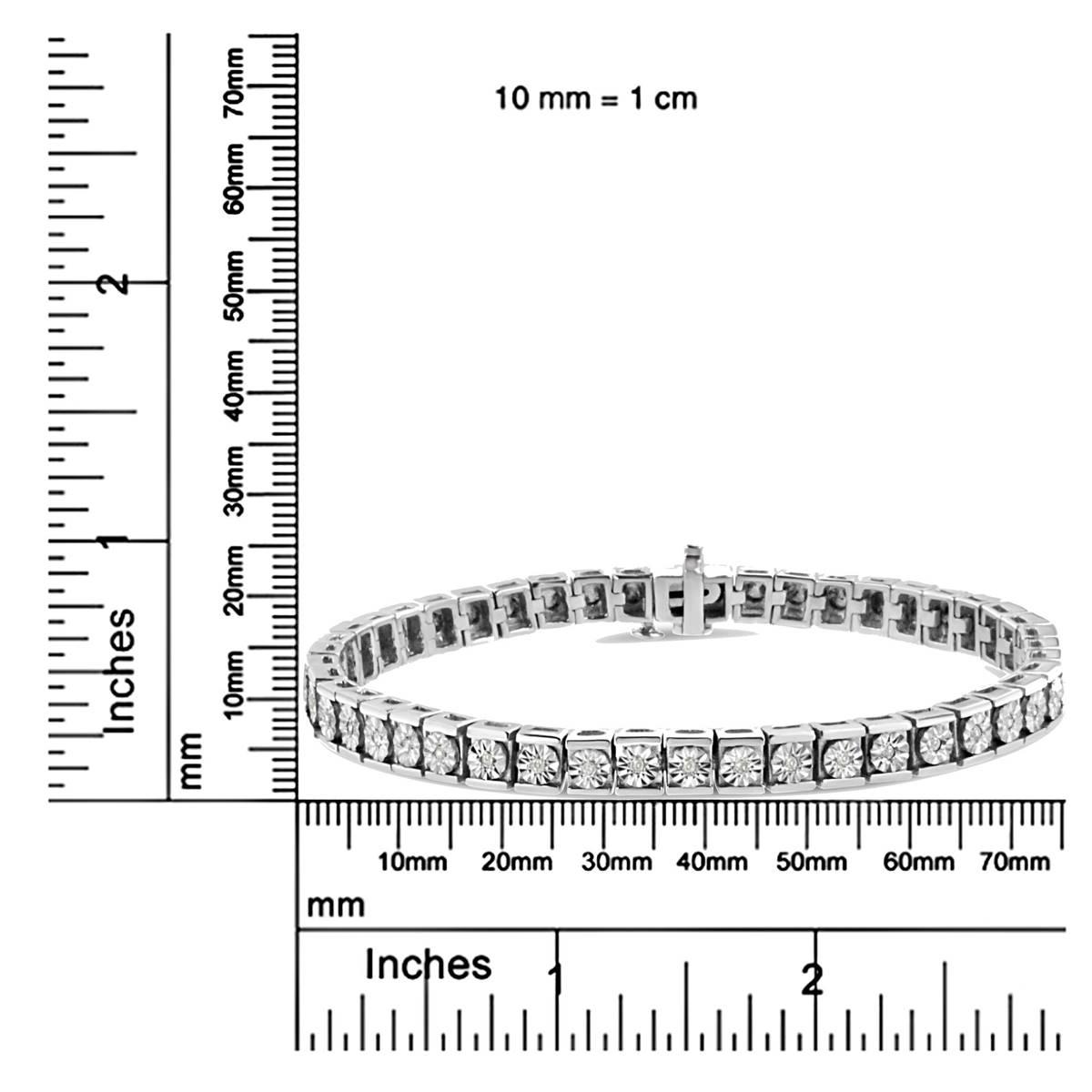 Elevate your style with this Haus of Brilliance diamond accent classic tennis bracelet. This piece is designed with natural, miracle-set diamonds in silver rectangular links. The diamonds are round-cut and sparkle against genuine .925 sterling silver, plated with rhodium for a lifetime of tarnish-free wear. The piece has a box clasp for a safe and secure fit on your wrist. You will love sporting this bracelet at any event.