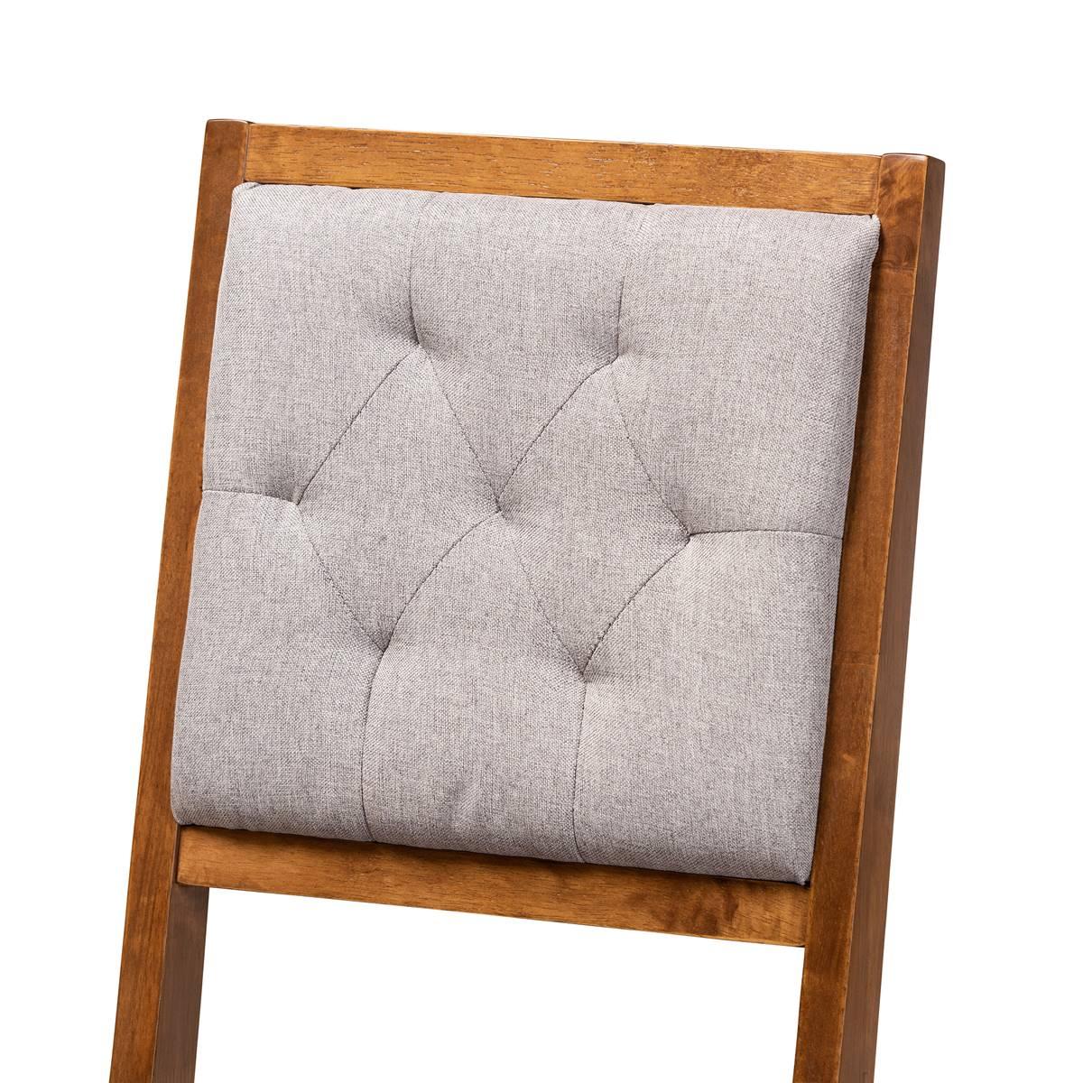 Craft an elegant arrangement for every meal with the stunning Baxton Studio Suvi 5-piece dining set. Made in Malaysia, this set includes four chairs and one table constructed from solid wood. Each chair features a plush backrest and seat upholstered in smooth fabric displaying a graceful diamond-tufted design. Requiring assembly, the Suvi utilizes a broad, rectangular tabletop to ensure ample elbow room for each member of the table. A fantastic culmination of style and comfort, the Suvi dining set is sure to elevate any occasion.