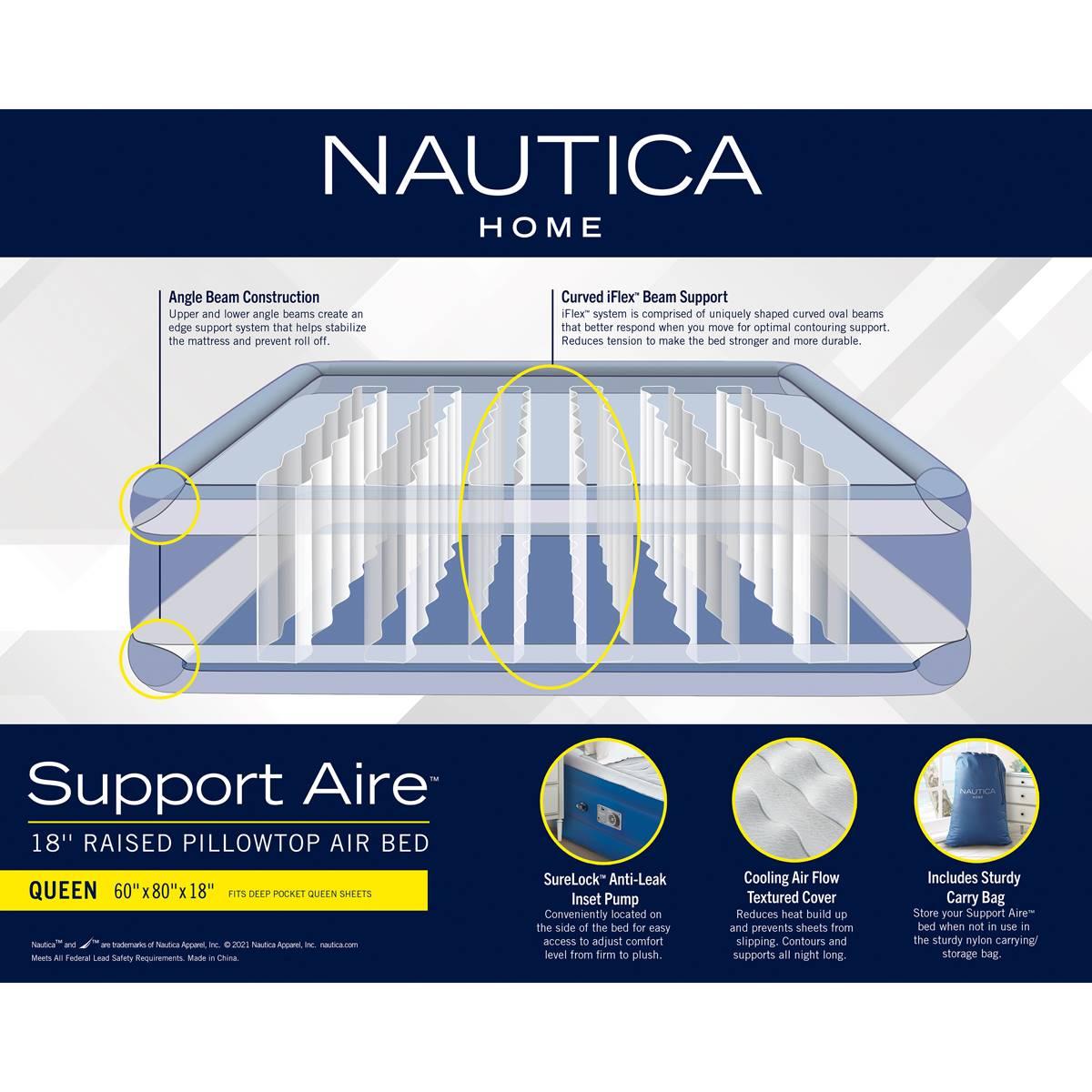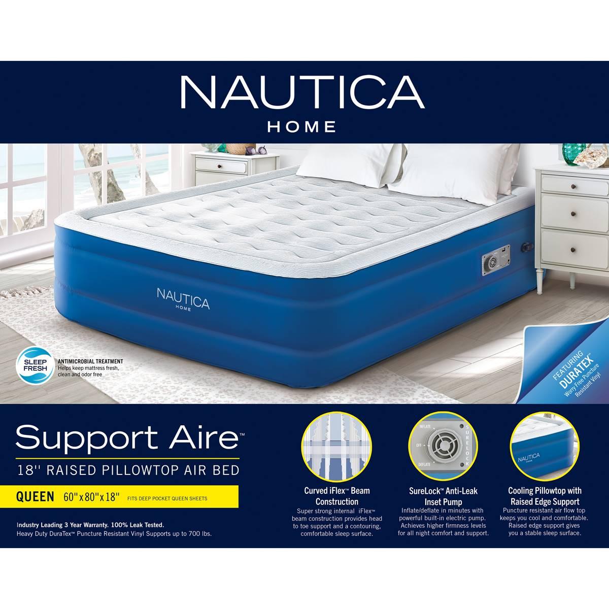 Description The Nautica Home Support Aire raised pillowtop air mattress provides supreme comfort and the lasting support of a traditional every night mattress that only a Nautica...