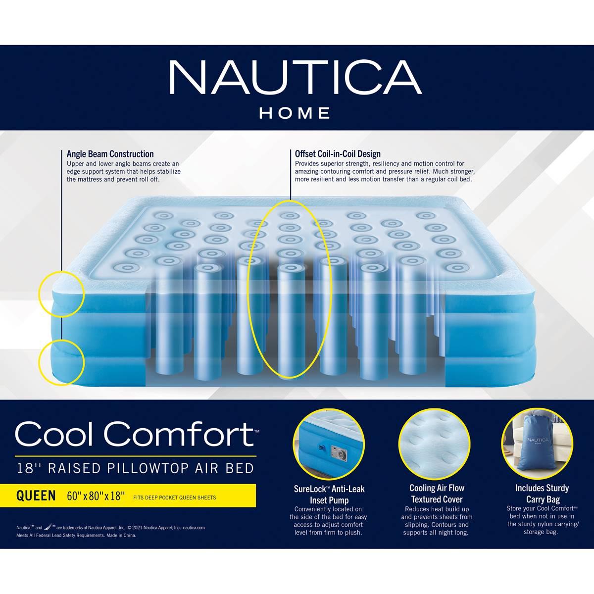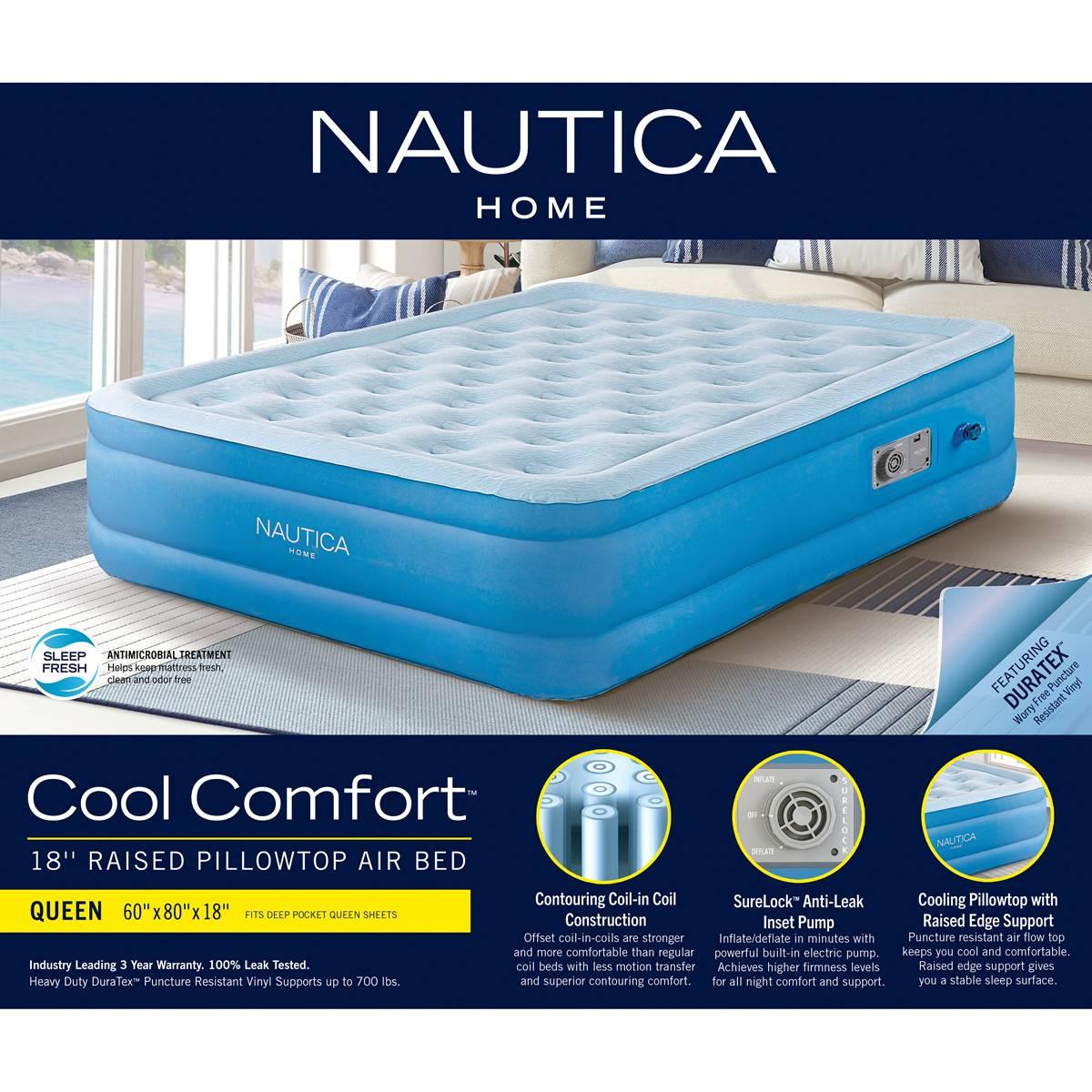 Description Enjoy a great night´s sleep on this Nautica Home Cool Comfort air mattress with sleep-fresh antimicrobial treatment. This air mattress will keep you cool with...