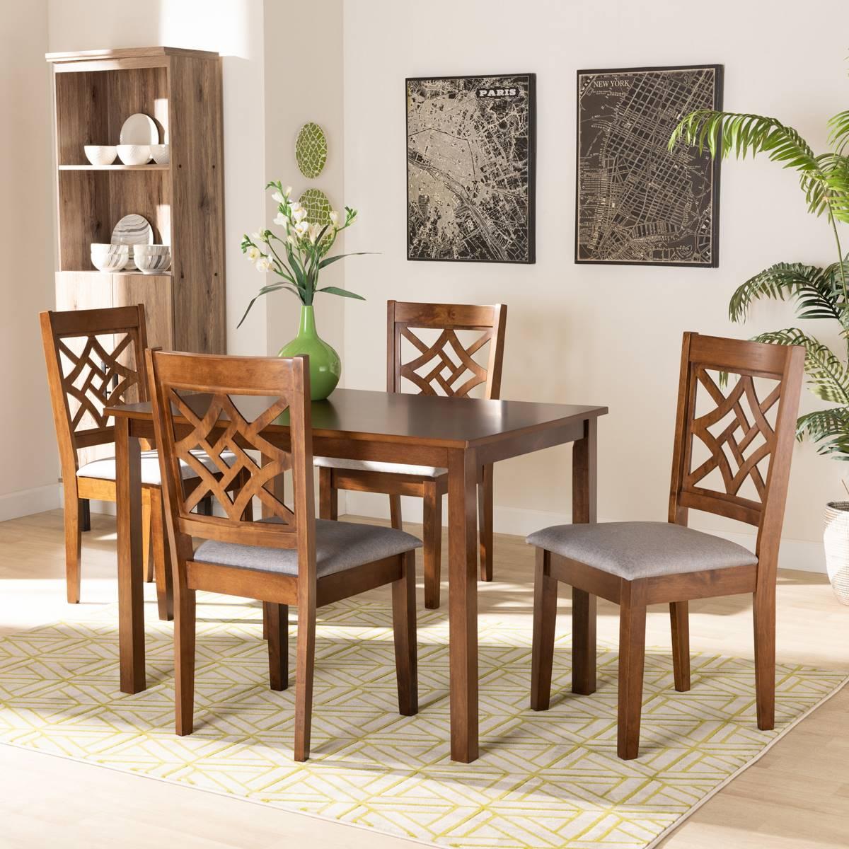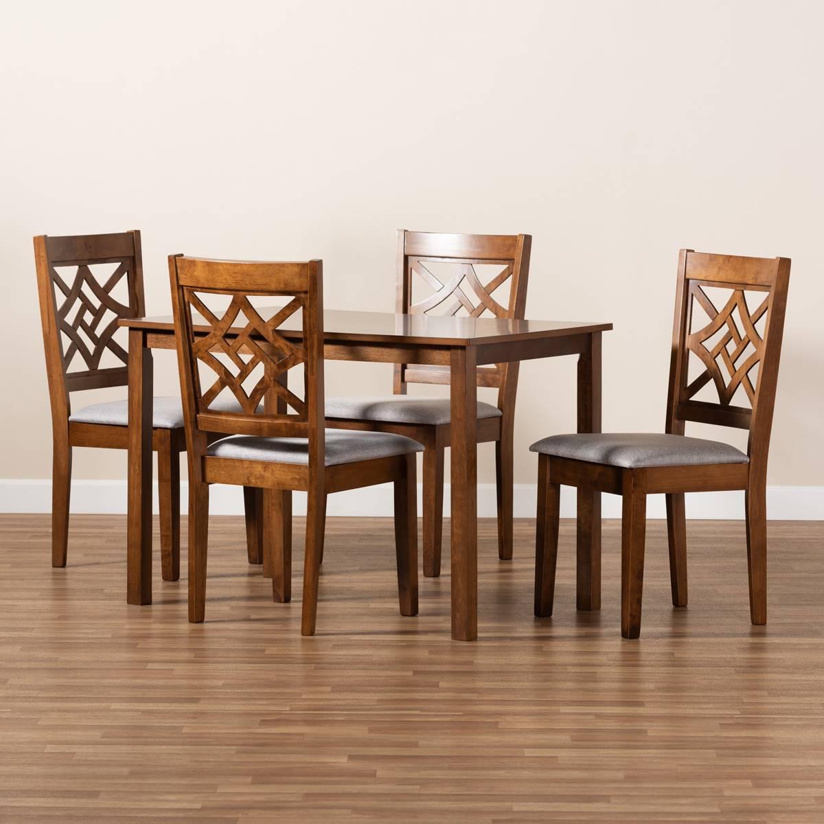 Baxton Studio Nicolette Grey/Walnut Brown 5pc. Dining Set