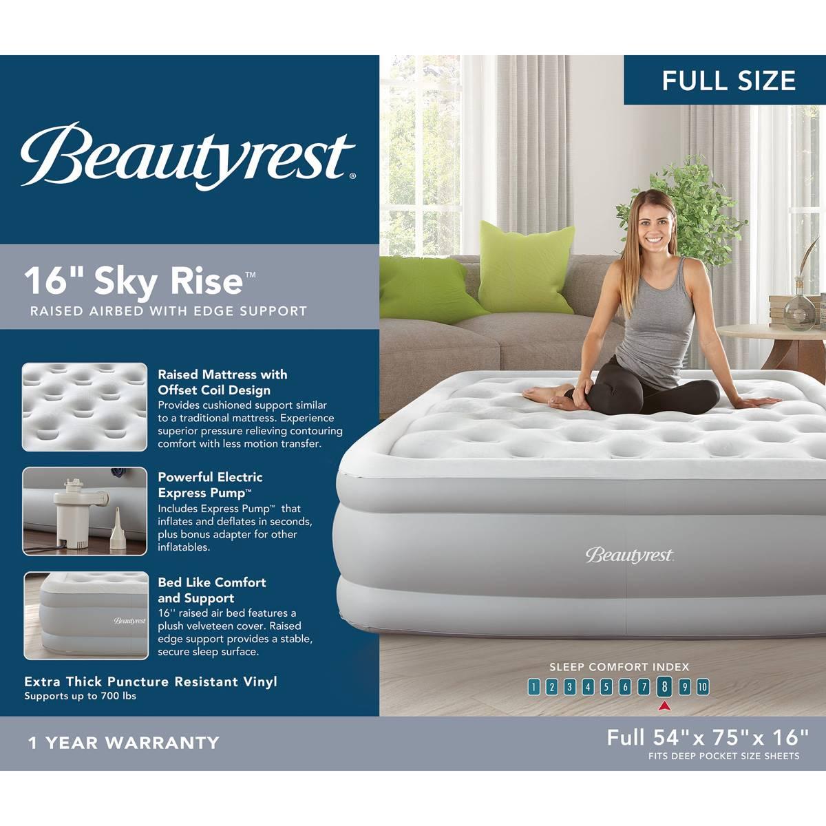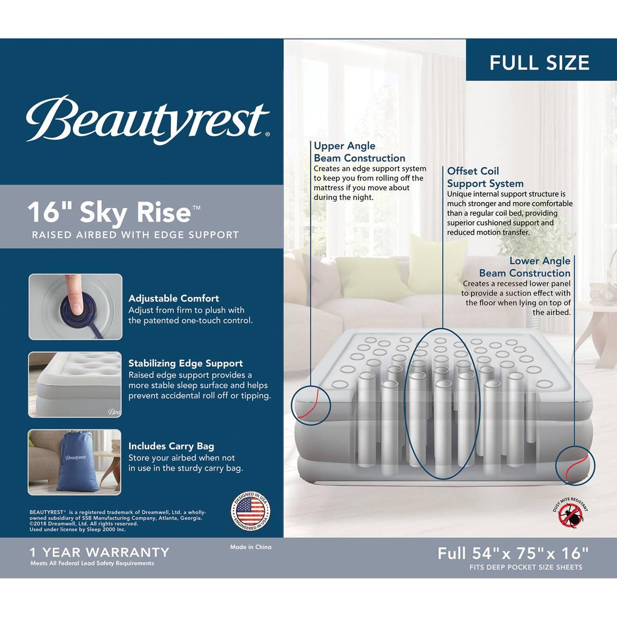 Description Enjoy a comfortable night´s sleep nestled within the gentle support of the Beautyrest® Sky Rise Raised 16-inch air mattress with edge support and hands-free...
