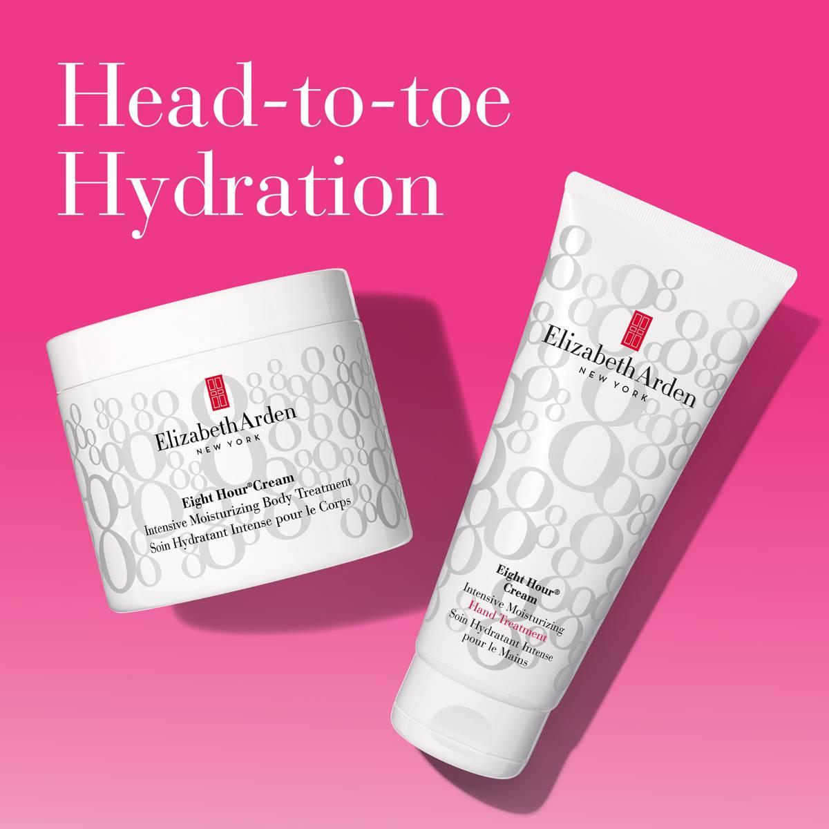 This 13.5oz. Elizabeth Arden eight hour® cream intensive body treatment reverses skin dryness, cracking, and flaking. Deeply moisturizes the body leaving skin soft, smooth, and hydrated. Moisturizes for up to 8 hours.