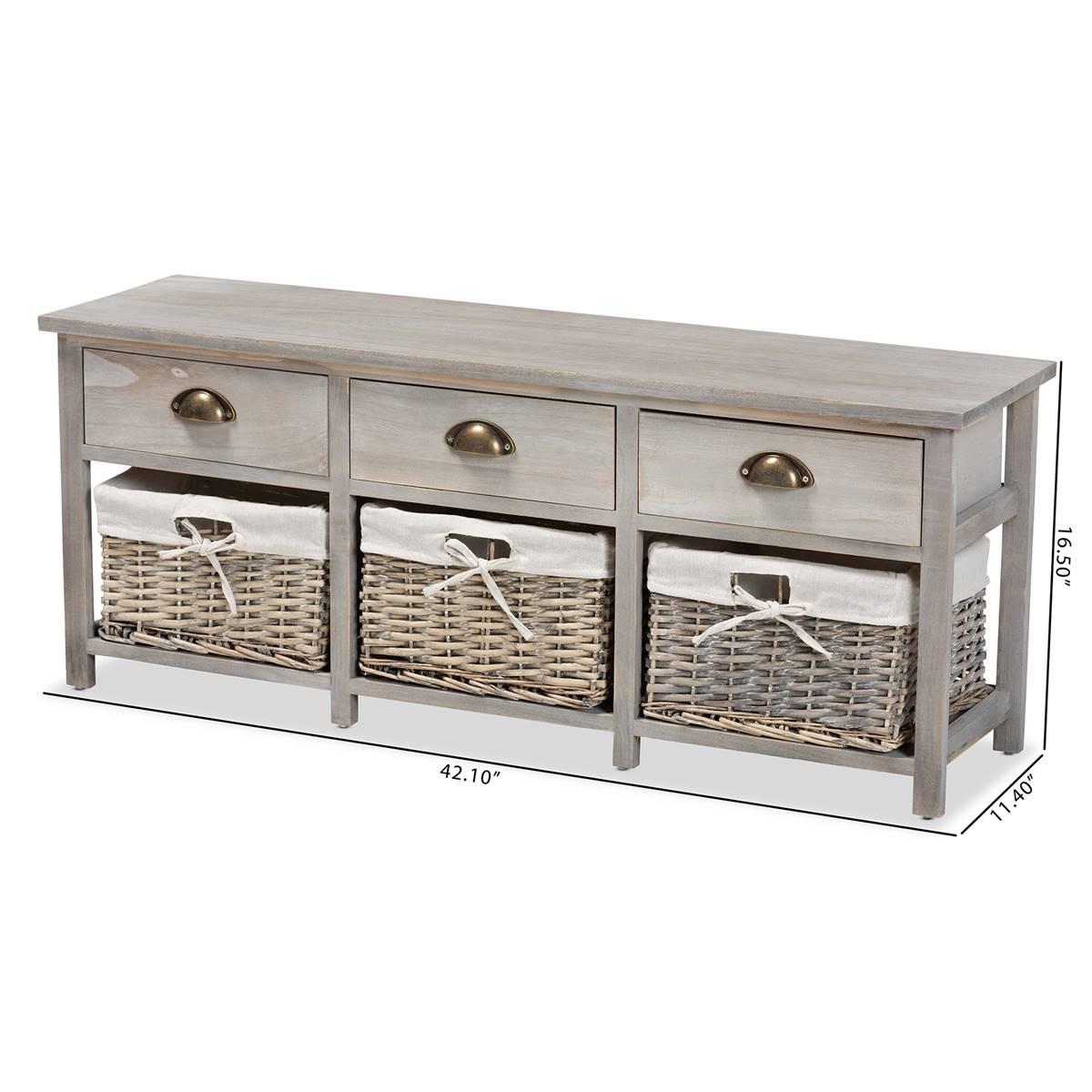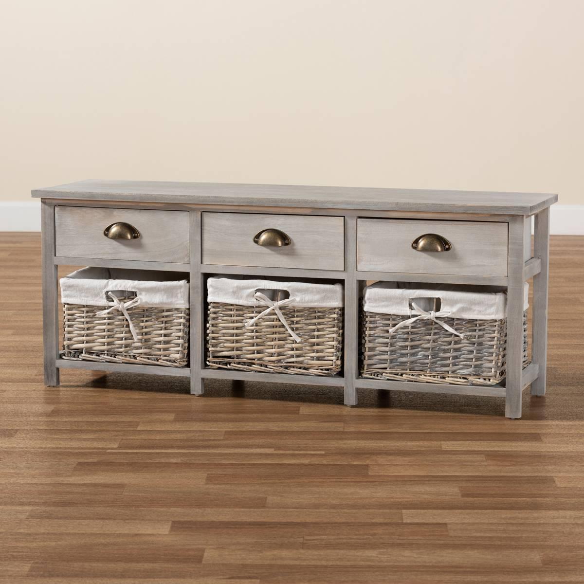 Baxton Studio Mabyn Light Grey Wood 3-Drawer Storage Bench