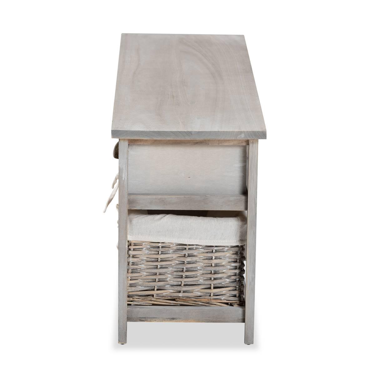Develop your entryway with the modern convenience of the Mabyn storage bench. Made in China, this bench is comprised of a sturdy wood frame fitted with wicker baskets. Three drawers and three baskets expand the storage potential of any space while smooth metal drawer knobs adorn the bench with industrial charm. The Mabyn will arrive fully assembled and utilizes fabric liners in its baskets for a contemporary touch. A versatile addition that exudes modern charm, the Mabyn storage bench elevates the potential of any space.