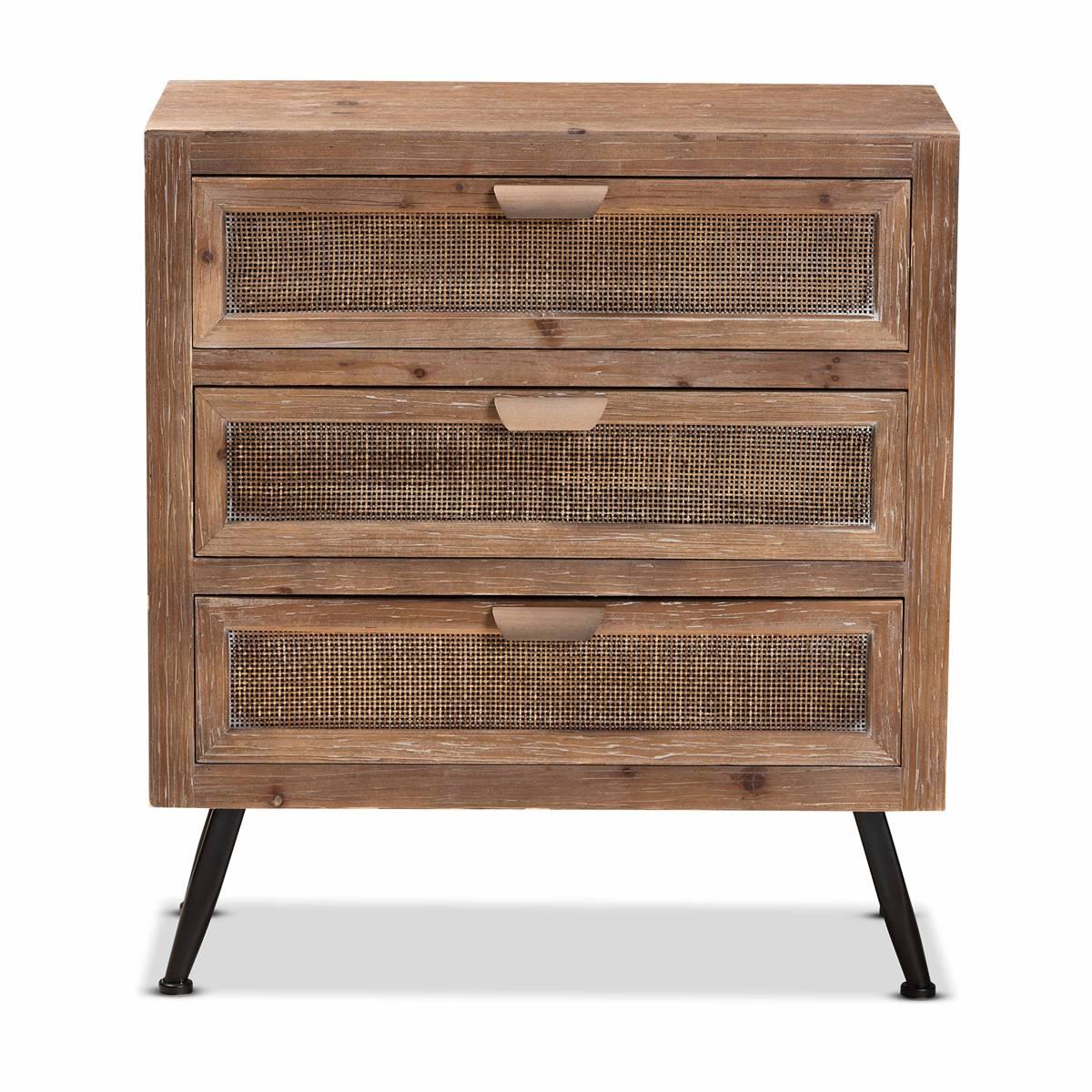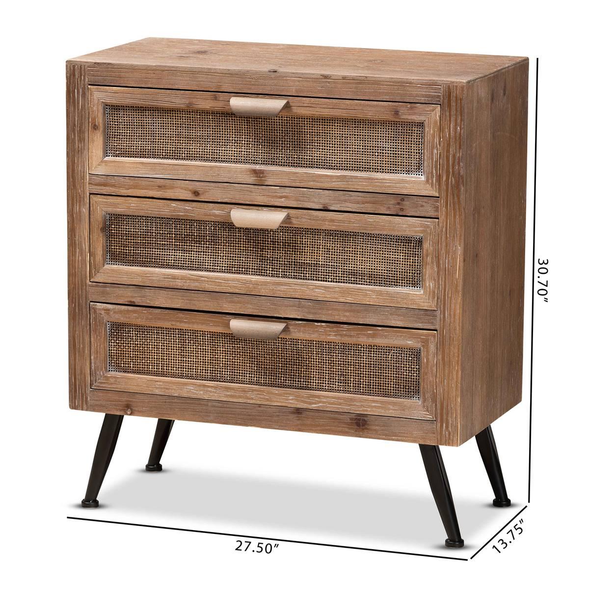 Baxton Studio Calida Finish Wood/Rattan 3-Drawer Nightstand