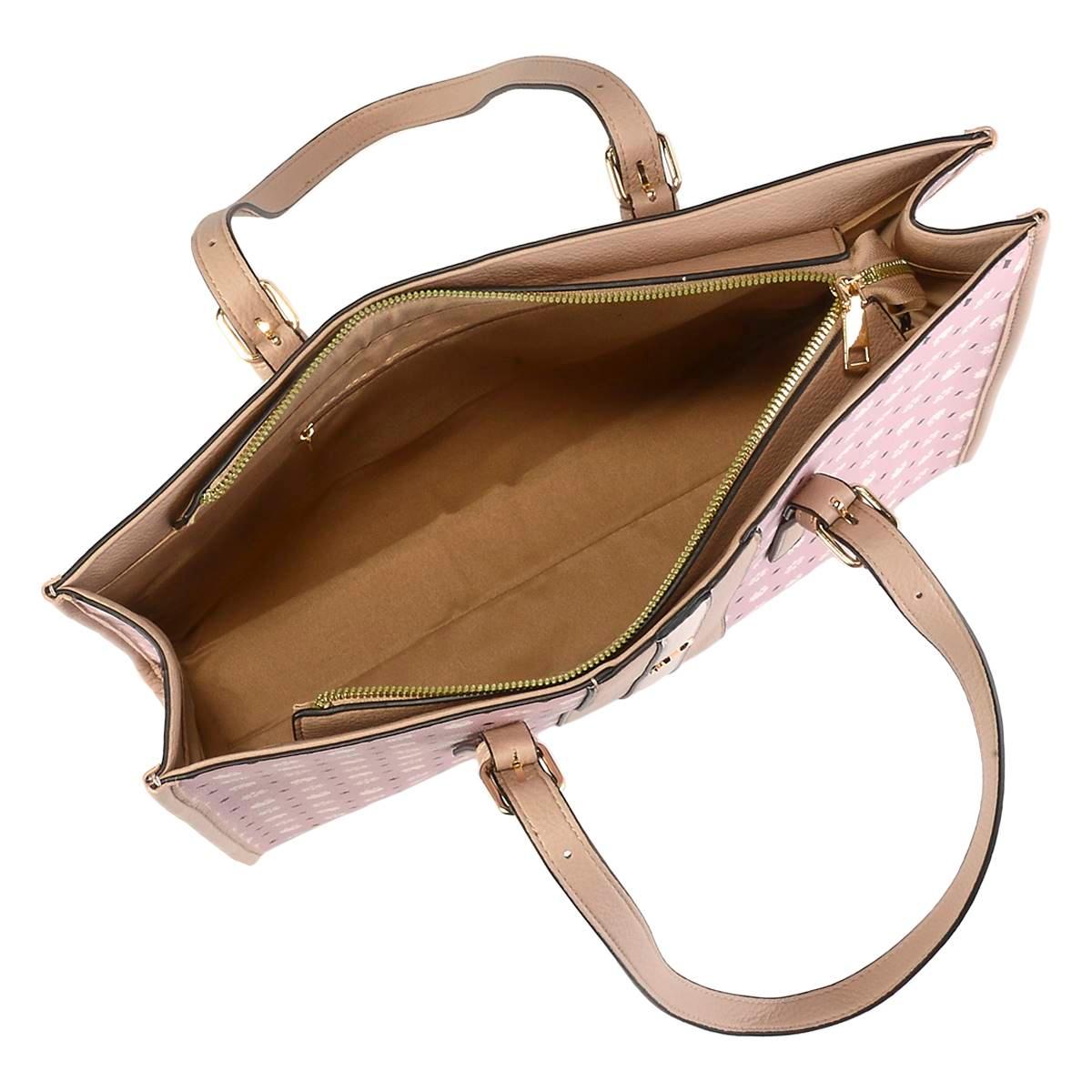 Pack up your things and be out the door with the Gloria Vanderbilt overlay tote. Providing adjustable double shoulder straps, top zip closure, and plenty of room inside for your essentials!