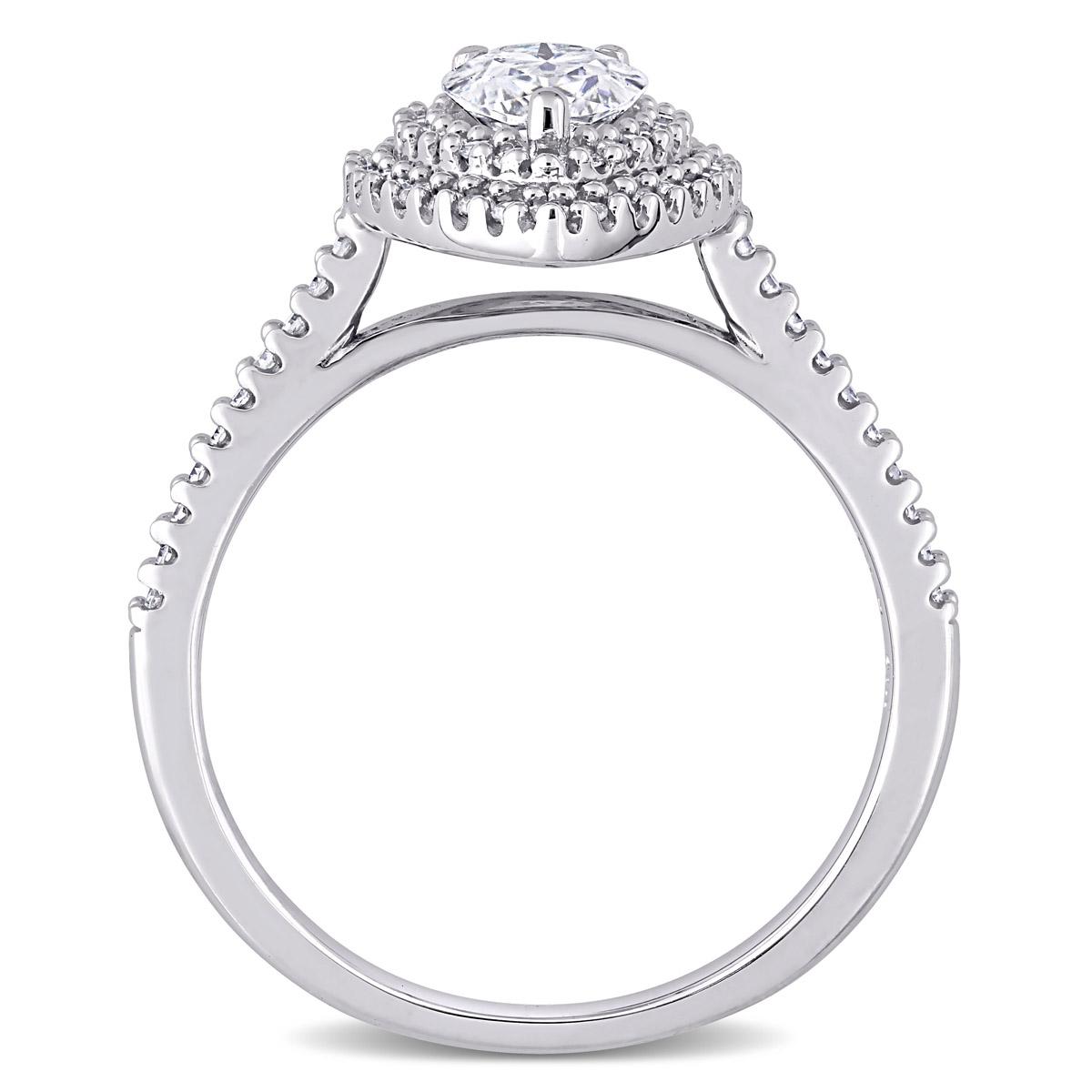 This Gemstone Classics™ 14kt. white gold 1ctw. moissanite teardrop ring is perfect for that special woman in your life. Features a stunning pear-cut, prong-set created moissanite at its center with 69 round-cut, buttercup-set diamonds in a sophisticated gemstone bridal double halo design. Celebrate this special milestone and begin the next chapter of your lives together.