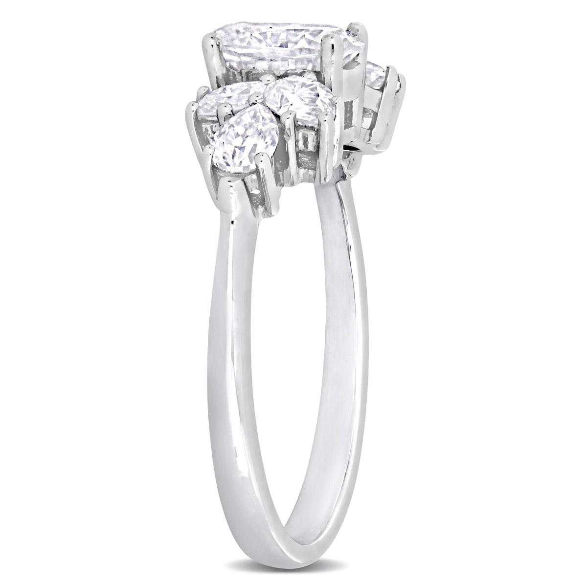 This Gemstone Classics™ 10kt. white gold 2ctw. moissanite engagement ring will give some grace and elegance to your loved one. Features an oval-cut, four-prong set created white moissanite gemstone in the center. Surrounding it, four marquise-cut, and four pear-cut white created moissanite gemstones. Polished to a brilliant shine.