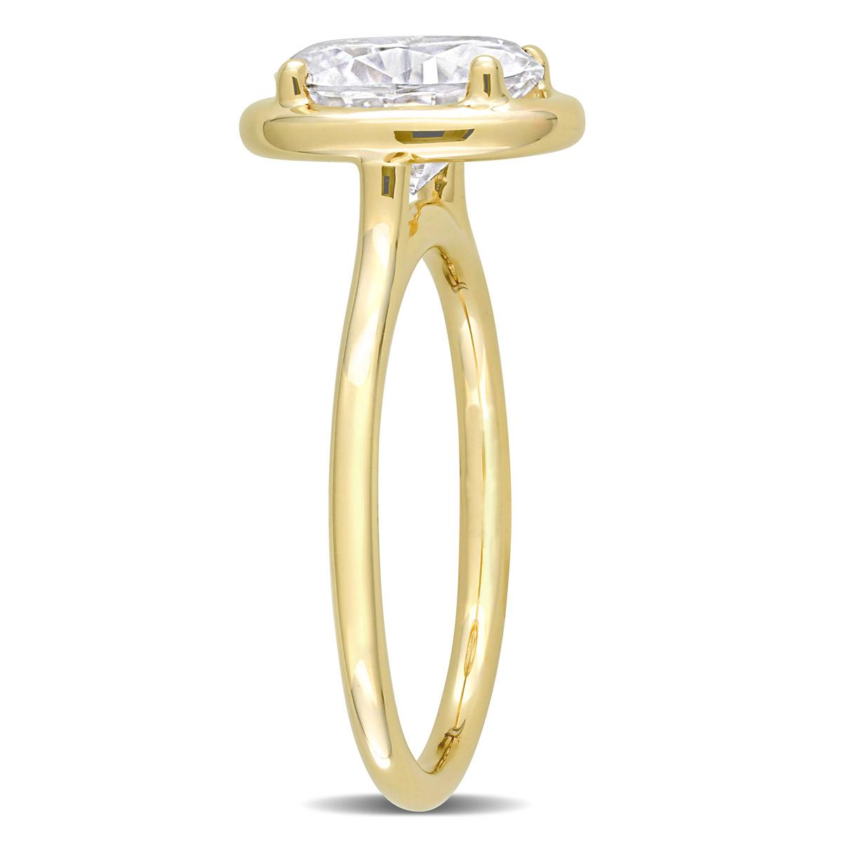 Commence your wedding journey with this Gemstone Classics™ 10kt. gold 2ctw. moissanite engagement ring. Features an oval-cut, created moissanite gemstone with a bezel-set look. Polished to a brilliant shine, this ravishing ring will be the symbol of your love, passion, and commitment.