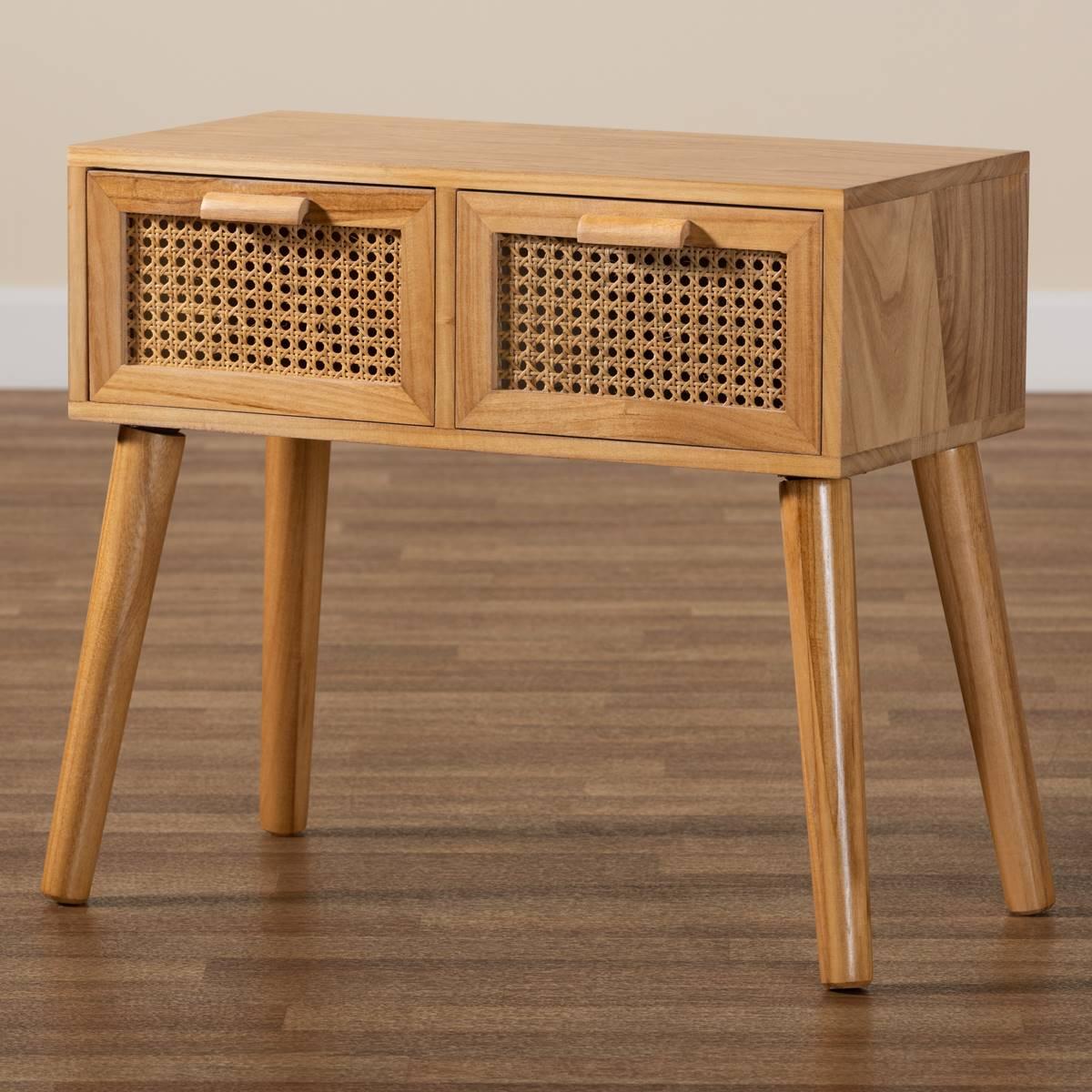 The timeless charm of mid-century design elevates any interior layout with the stunning Baxton Studio Falan console table. Made in China, this handy piece is comprised of a sturdy wood frame adorned with woven rattan drawer faces. Two convenient drawers expand the storage capabilities of any space while the wide tabletop serves as an eye-catching pedestal for decorations. The Falan will arrive fully assembled and utilizes broad, angled legs for stable support that form a remarkable silhouette. A fantastic accent piece for the modern home, the Falan console table elevates any interior.
