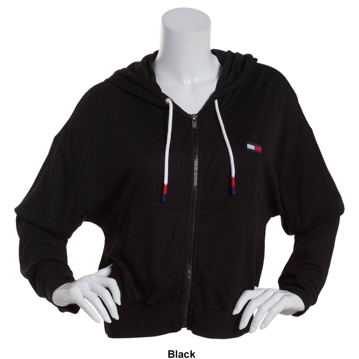 Womens Tommy Hilfiger Sport Soft Waffle Full Zip Cropped Hoodie