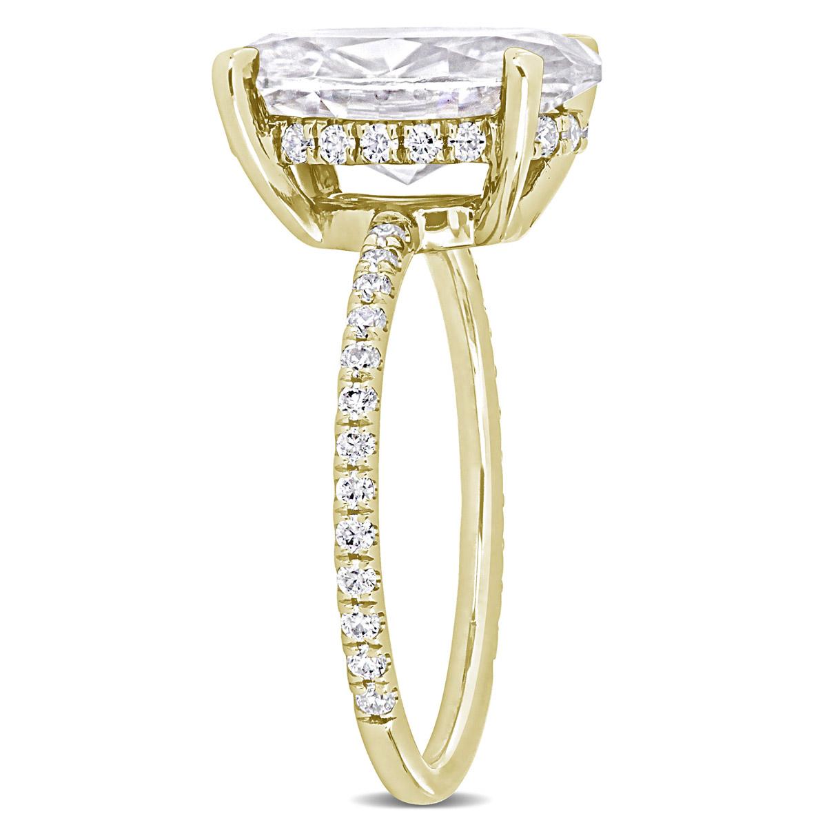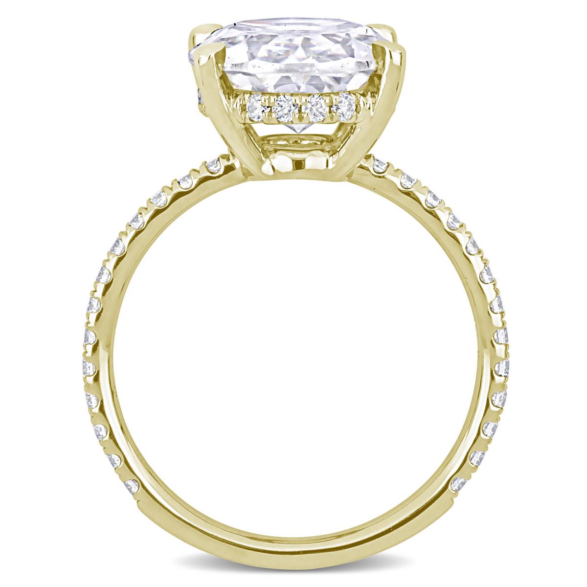 Description This Gemstone Classics™ 10kt. yellow gold 4 7/8ctw. moissanite ring will make the perfect gift for your beloved. Features one magnificent oval-shaped, prog-set...