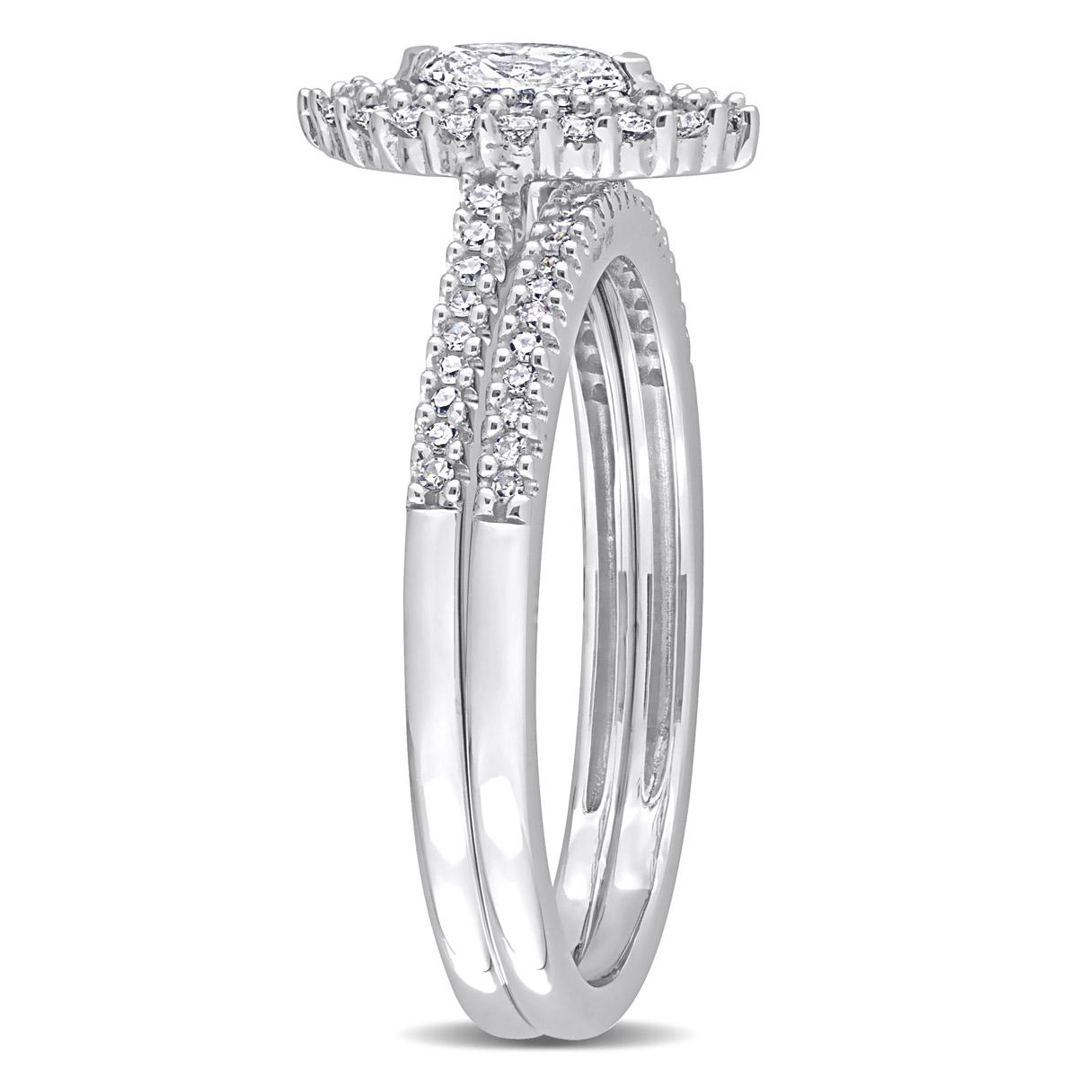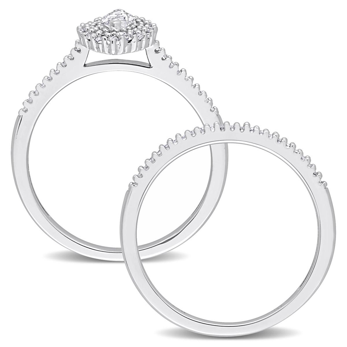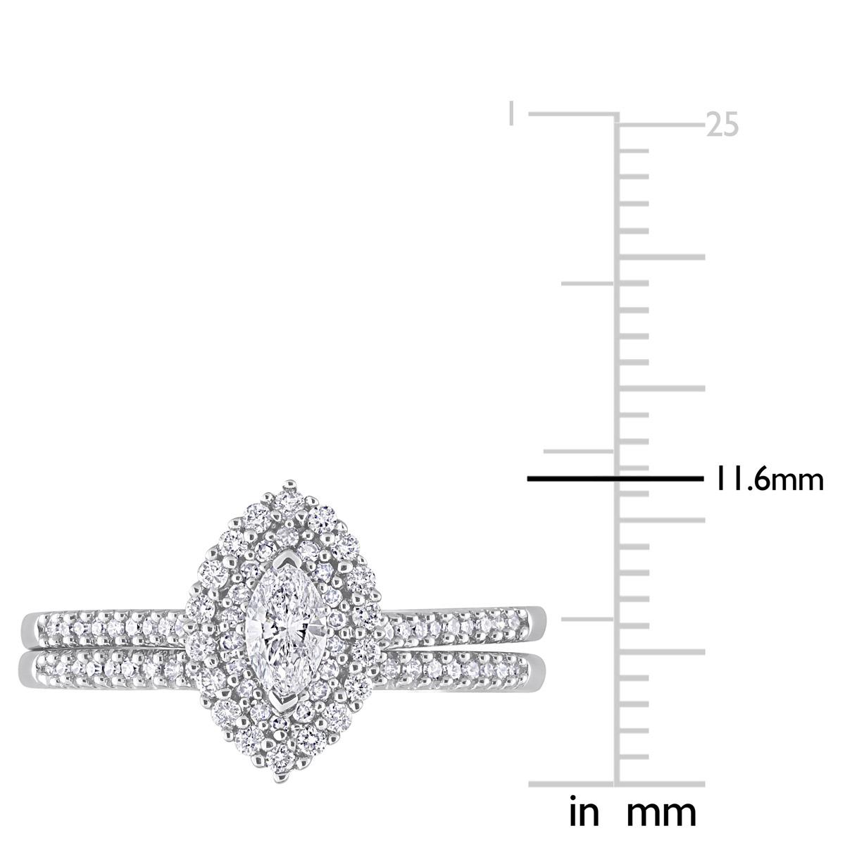 This Diamond Classics™ 14kt. white gold 1/2ctw. diamond cluster ring bridal set is perfect for a woman who likes to leave an everlasting impression. Showcases a marquise-cut, prong-set diamond at the center surrounded by round-cut buttercup-set diamonds. Enhanced with a highly polished finish.