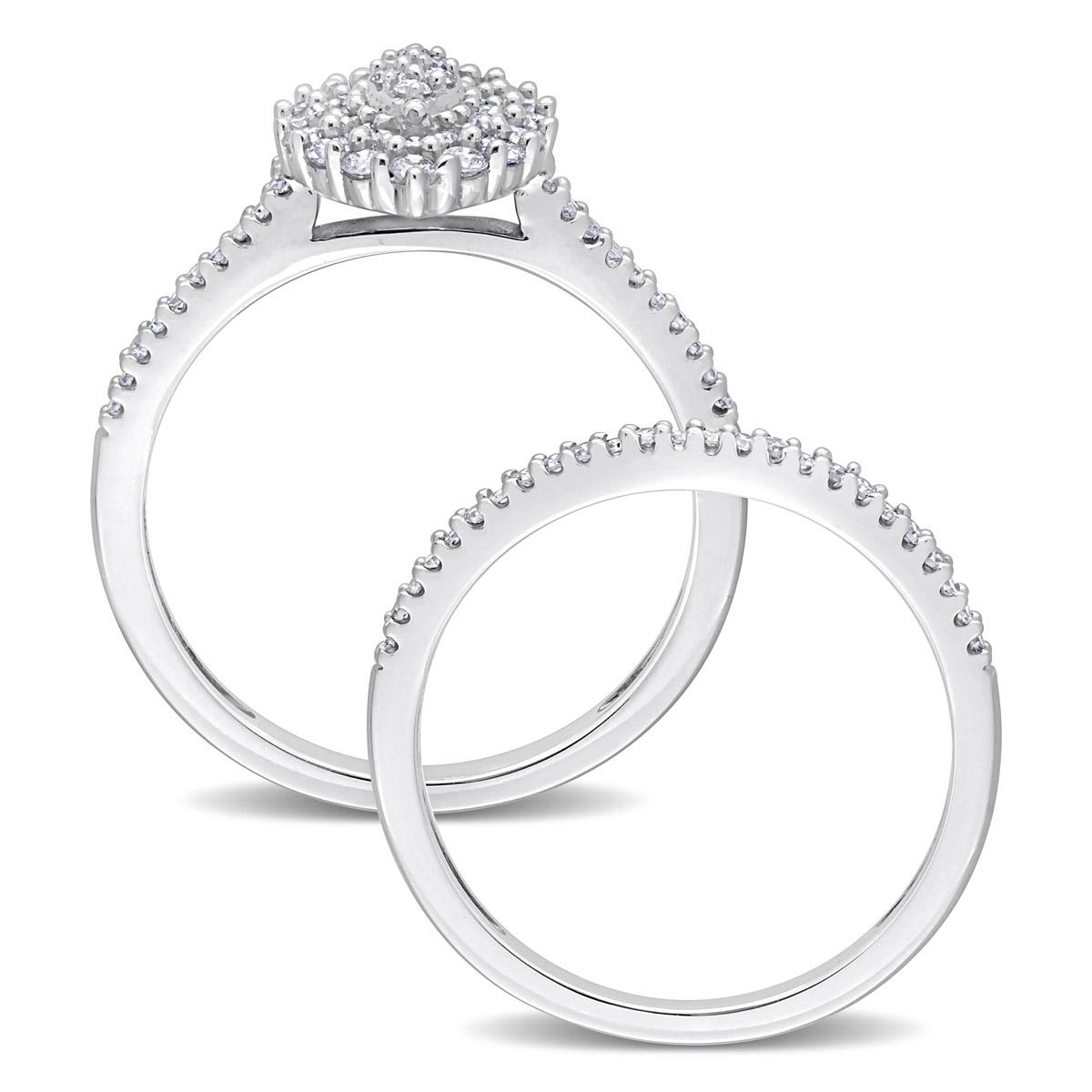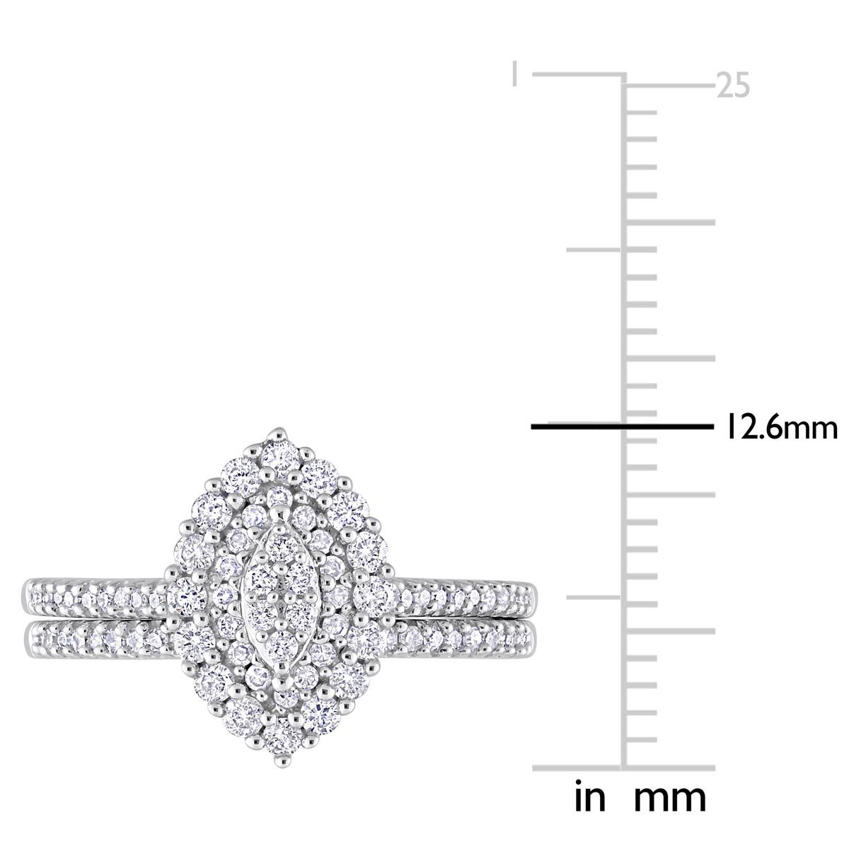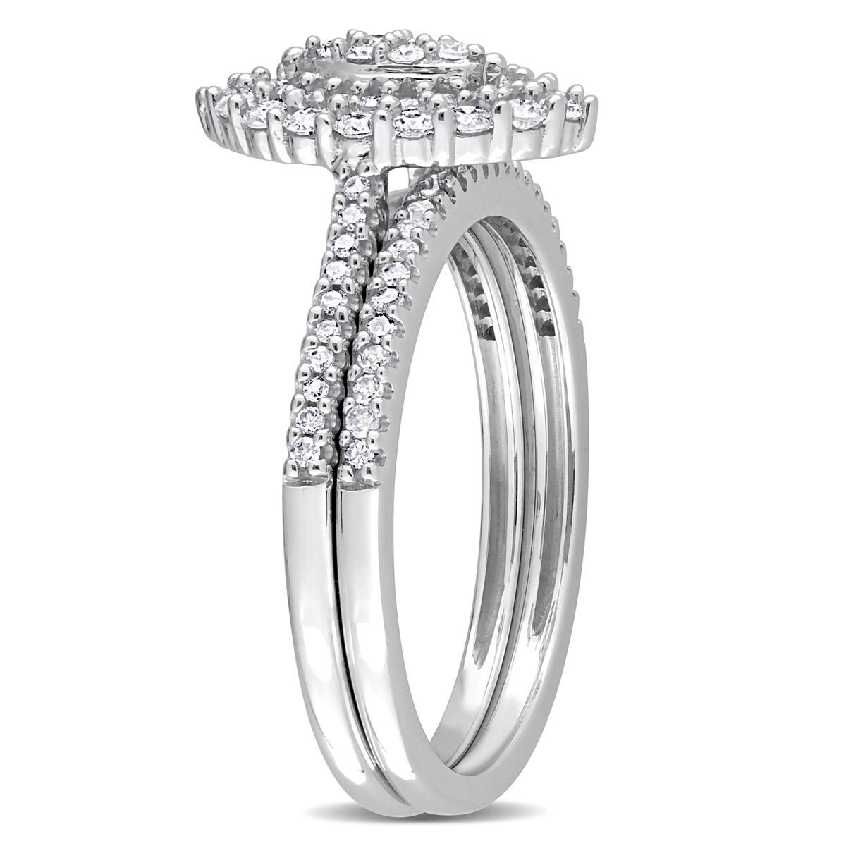Description Make the most sincere declaration of your love and commitment with this Diamond Classics™ 14kt. white gold 1/2ctw. diamond halo ring bridal set. Showcases 83...