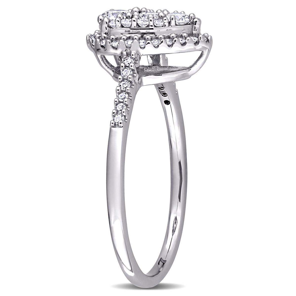Choose this Diamond Classics™ 10kt. white gold 1/2ctw. diamond pear ring for the woman you love as you celebrate this special milestone and begin the next chapter of your lives together. Features 46 round-cut, prong, and buttercup-set glistening diamonds in a unique and eye-catching composite teardrop halo bridal design.