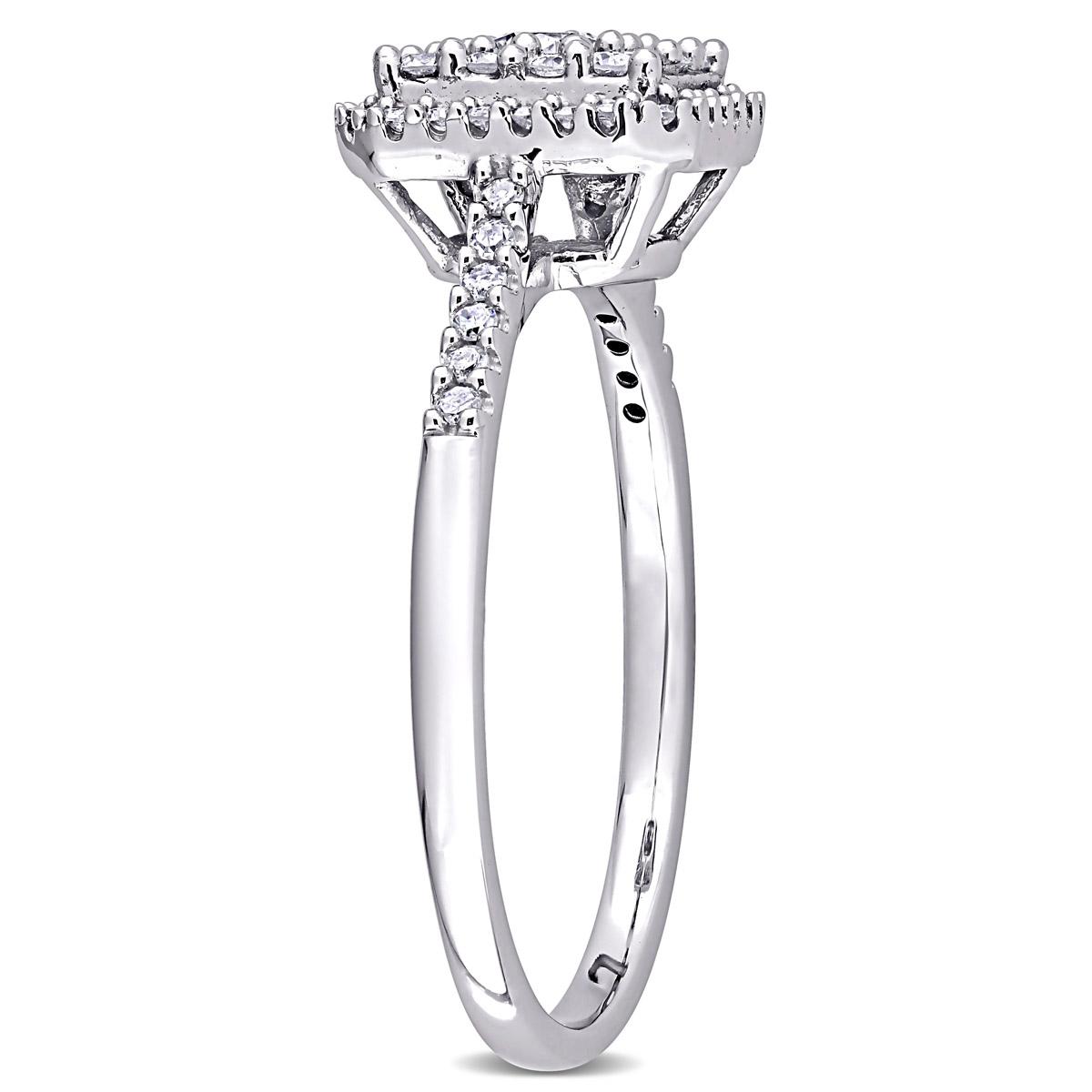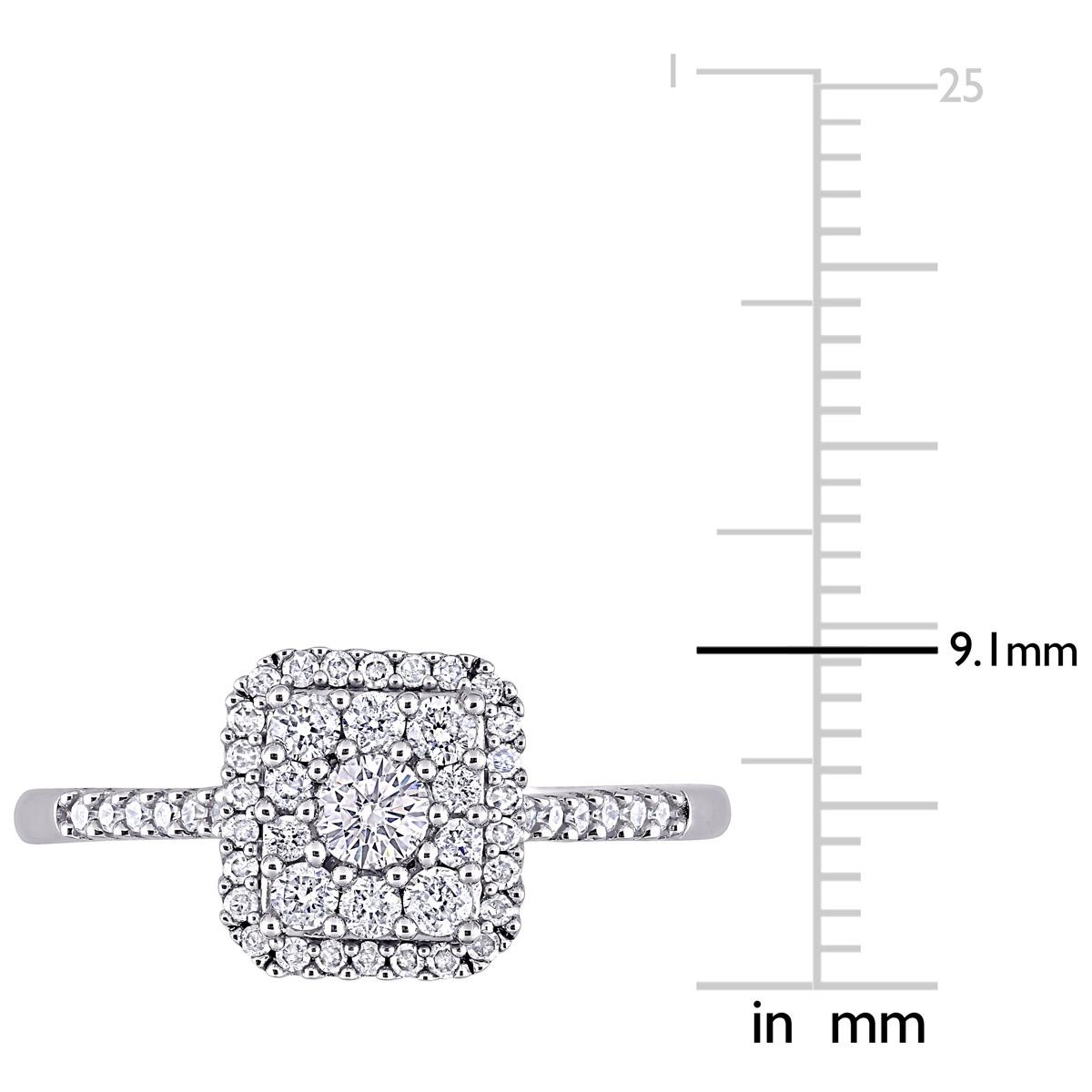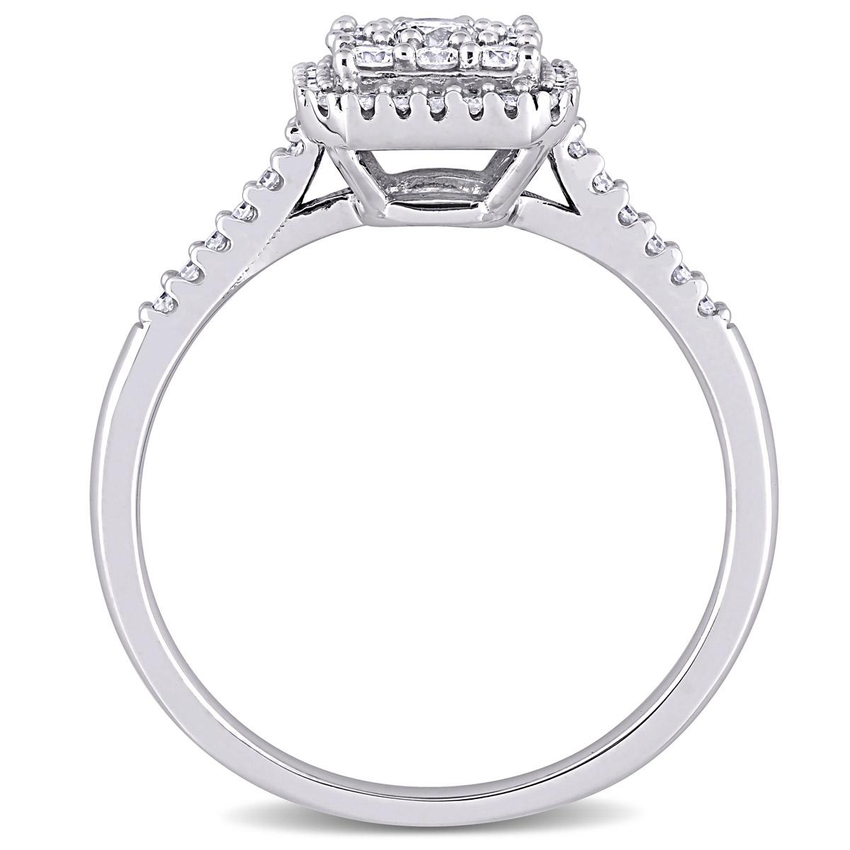 Choose this diamond classics™ 10kt. white gold 1/2ctw. diamond square ring for the woman you love as you celebrate this special milestone and begin the next chapter of your lives together. Features 49 round-cut, prong, and buttercup-set glistening diamonds in a unique and eye-catching composite square halo bridal design.
