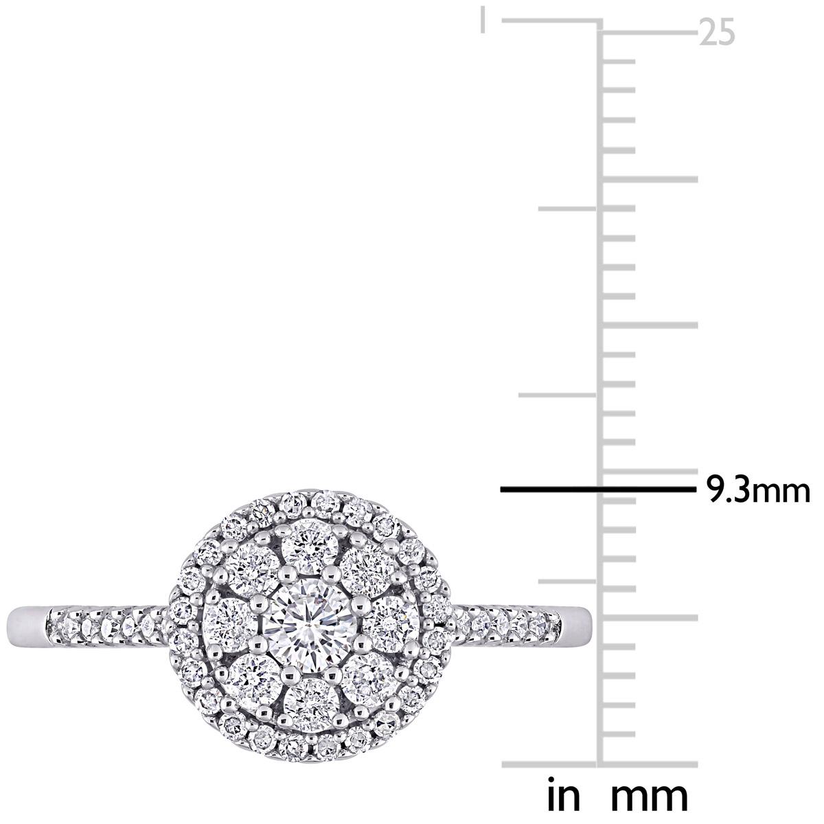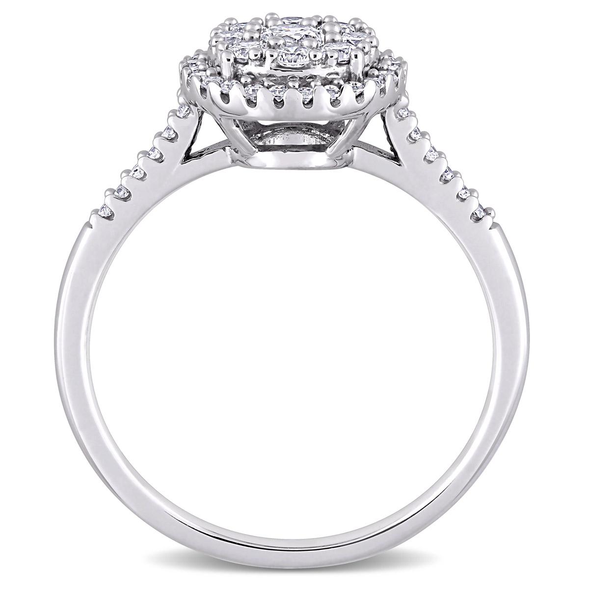 Choose this Diamond Classics™ 10kt. white gold 1/2ctw. diamond round ring for the woman you love as you celebrate this special milestone and begin the next chapter of your lives together. Features 45 round-cut, prong, and buttercup-set glistening diamonds in a unique and eye-catching composite round halo bridal design.