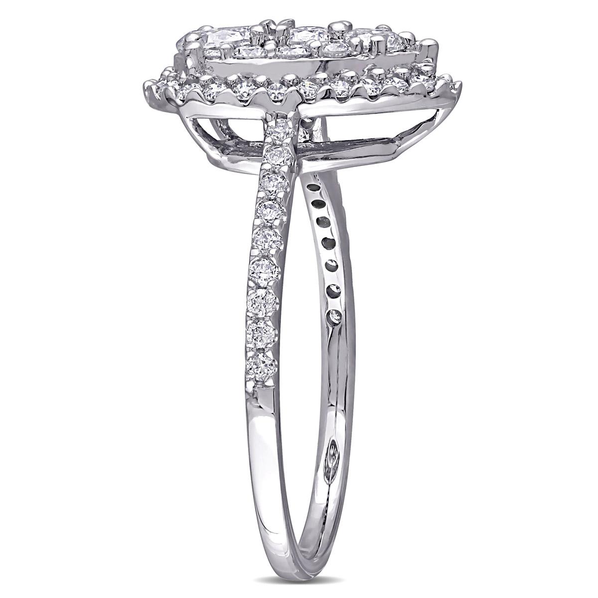 Description This Diamond Classics™ 10kt. white gold 1ctw. diamond pear ring adds a spark to your accessory collection. Features 42 round-cut, micro-set, and 11 round-cut,...