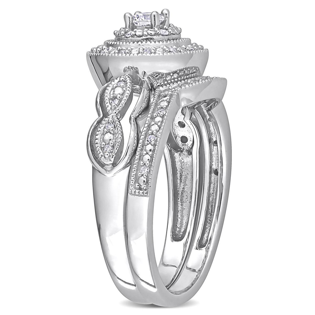 Description Choose this Diamond Classics™ 10kt. white gold 1/4ctw. diamond bridal set for the woman you love. Features 37 round-cut, pave, and prong-set glistening diamonds in...