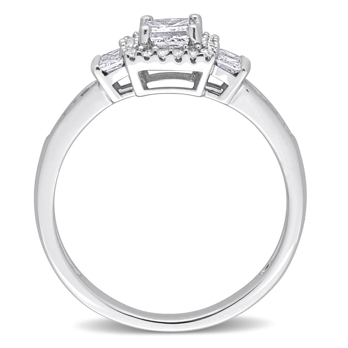 Description Turn a new page in your life as you ask her to marry you with this Diamond Classics™ 14kt. white gold 3/4ctw. diamond halo ring. Features 31 princess and...