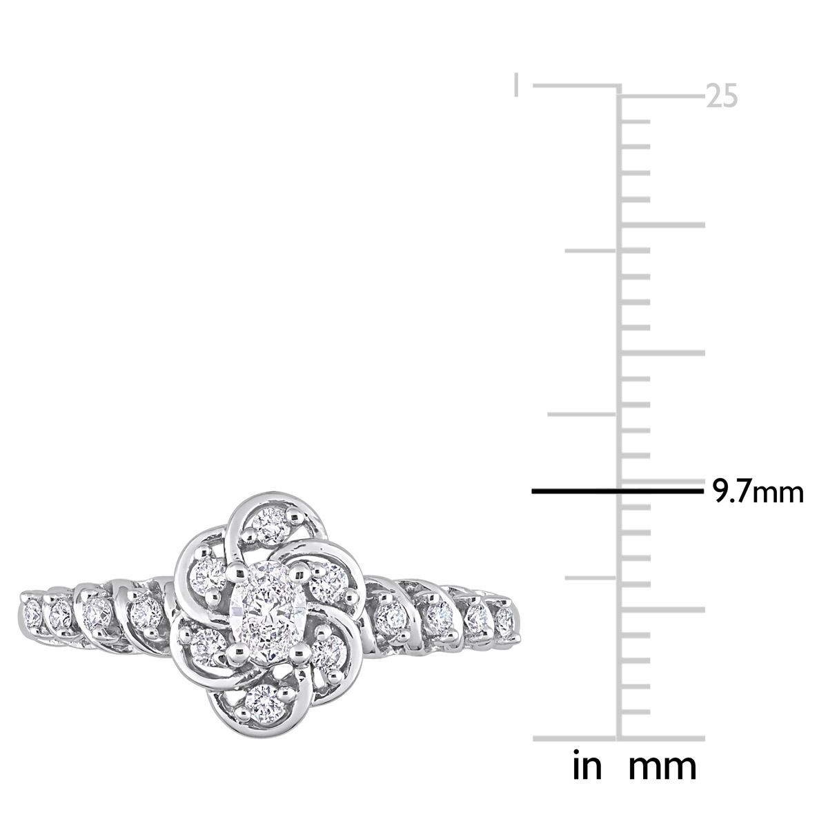 Choose this Diamond Classics™ 14kt. white gold 1/3ctw. diamond twist ring for the woman you love and begin the next chapter of your lives together. Features an oval-cut sparkling diamond at the center along with 14 round-cut diamonds in a unique spiral floral bridal ring design.